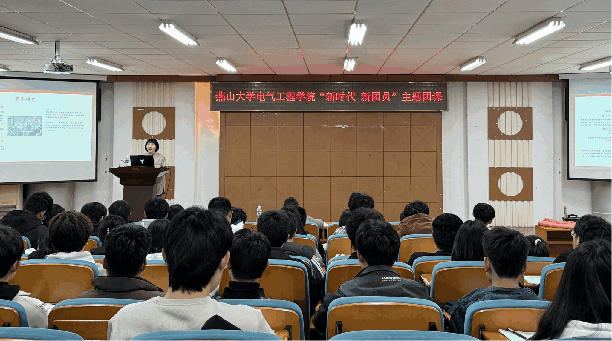 为引导广大团员青年在团史学习中汲取奋进力量、筑牢信仰之基,11月12日,电气工程学院组织开展“新时代 新团员”主题团课。本次团课由校团委组织部部长白丽丽老师担任主讲,学院团委书记刘凯出席活动。学院新发展团员及团干部代表参加学习,活动由团委副书记赵雨桐主持。