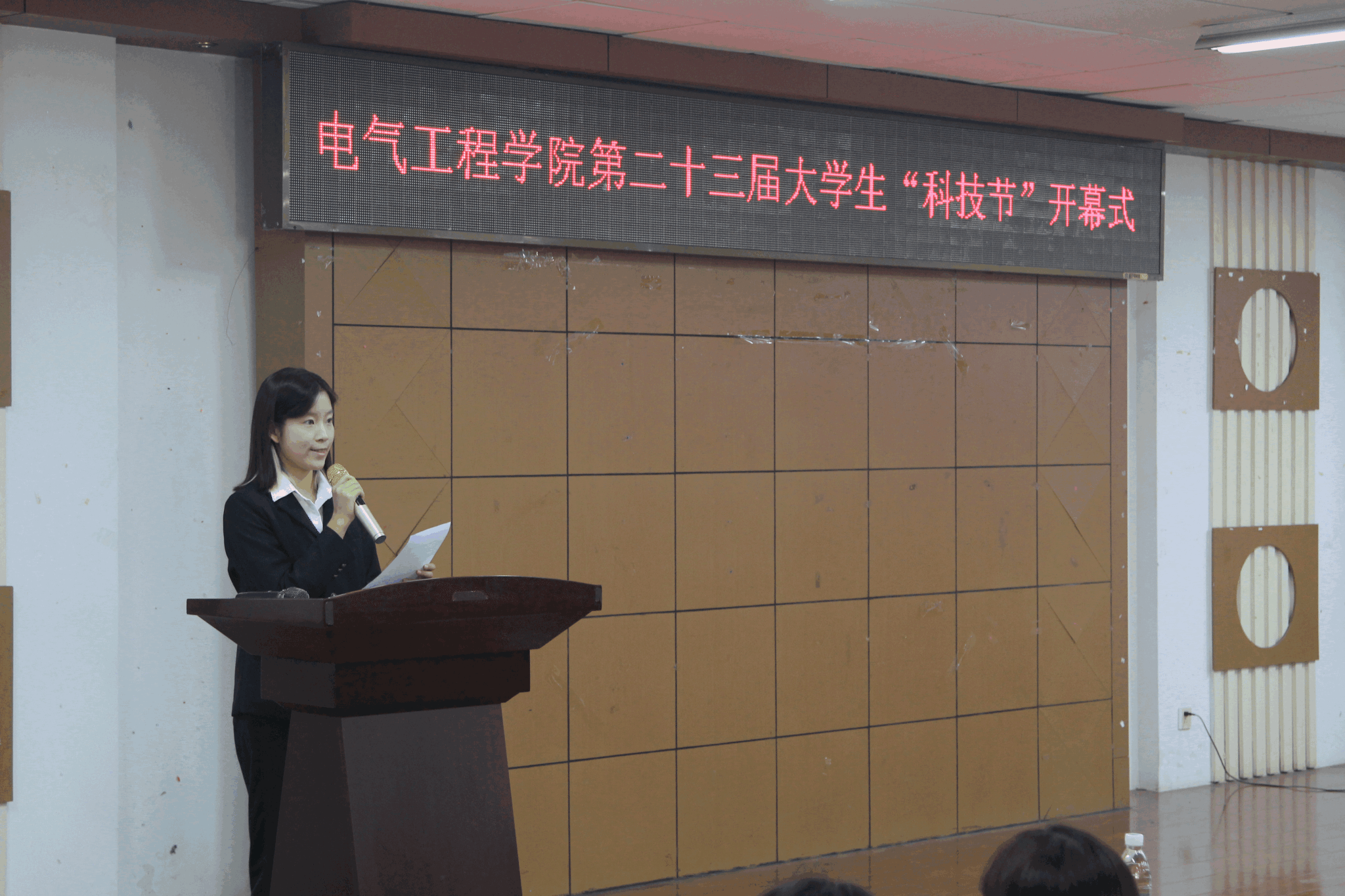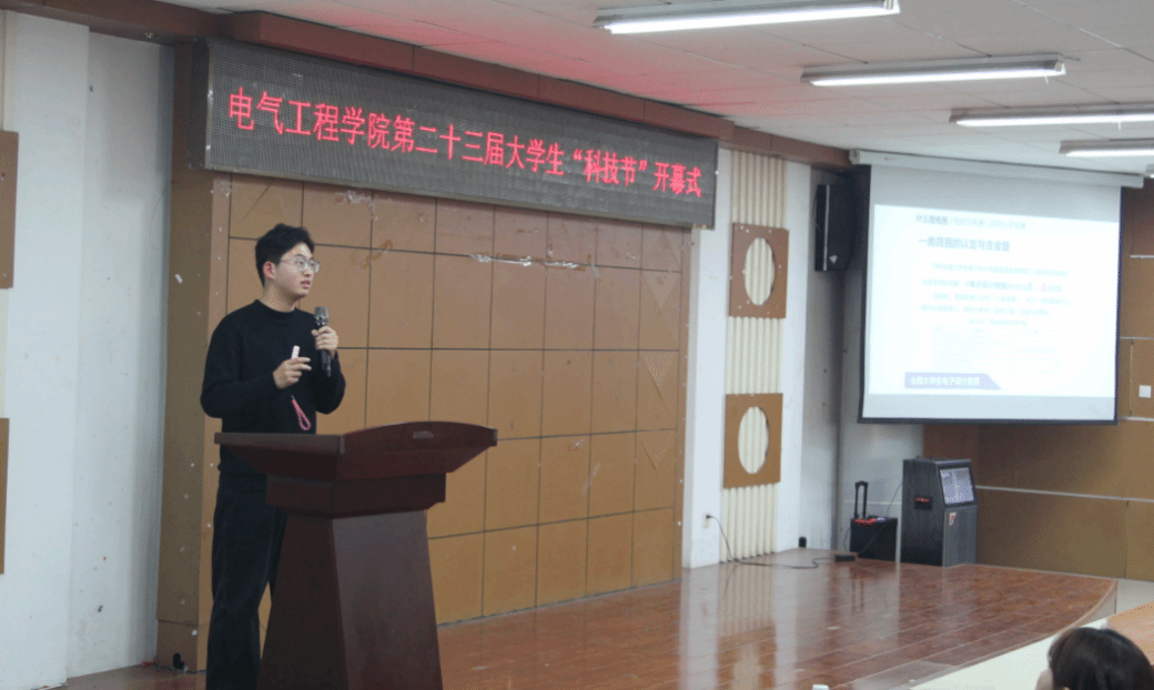 科技节在院长郭小强宣布“电气工程学院第二十三届科技节正式开幕”声中正式拉开帷幕。郭院长以优秀毕业生为例,鼓励同学们夯实专业基础,勇于创新实践。他指出,这些校友的成长轨迹充分证明,个人的发展只有与国家和时代的需求同频共振,才能绽放最耀眼的光彩。 他勉励在场同学,要珍惜科技节这个展示自我、锻炼能力的平台,将课堂所学与动手实践相结合,敢于奇思妙想,勇于挑战前沿,努力成长为推动科技进步和社会发展的栋梁之才。