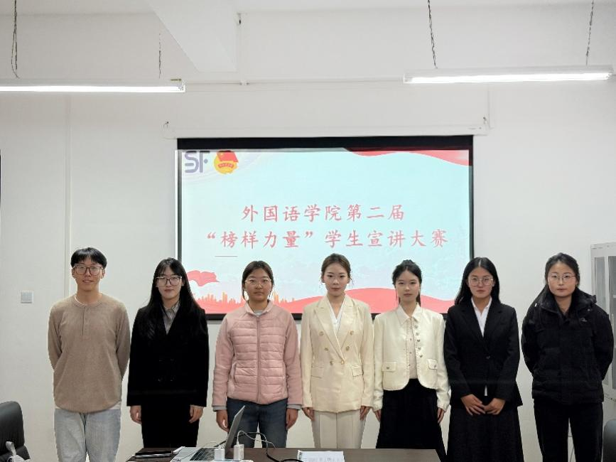 为深入学习宣传贯彻习近平新时代中国特色社会主义思想,落实党的二十大和二十届历次全会精神,充分发挥青年榜样的示范引领作用,挖掘外院学子身边的先进典型,激励广大同学锐意进取、担当作为,3月19日下午15时,外国语学院在人文馆418举办第二届“榜样力量”学生宣讲大赛.