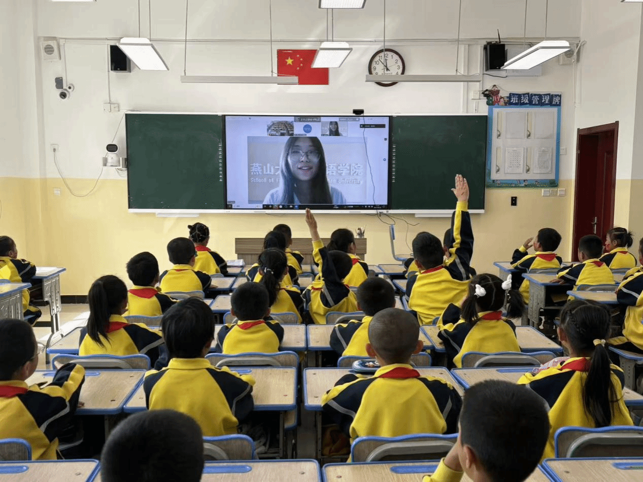 在中华人民共和国成立75周年的重要历史节点,外国语学院联合燕山大学研究生支教团,于9月26日共同开展了“语心向党”爱国主义教育双语主题党课,将优质教育资源与理想信念教育送至柴达木路小学。此次活动既是我院创新语言教学形式、深化思政教育融入的具体实践,也是发挥高校学科转业特色、服务基层教育、推动 “大思政课” 落地生根的生动体现,彰显了我院在立德树人工作中的主动作为与责任担当。此次党课由张晟、赵佳怡和杨欣悦三位优秀学生代表主讲。