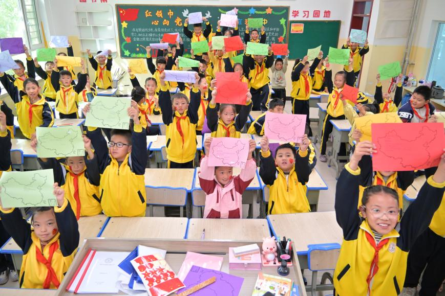 张晟以“语言—认知—情感”多维联动为核心设计思路,通过中英文互动,引导学生在中国地图上进行词汇标注。在语言知识学习的过程中,学生们不仅强化了国家领土完整意识与民族自豪感,更深刻体悟新中国成立的伟大意义,逐步认识到祖国每一寸山河承载的历史重量与责任,进而自觉树立捍卫国家主权和领土完整的坚定信念。