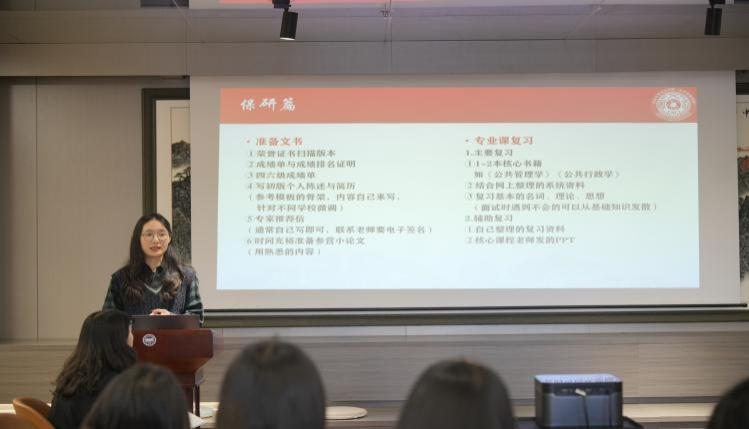 文法学院(公共管理学院)曹雯溪同学分享了她的保研与学习经历,从学业篇、科学竞赛篇、保研篇三点为同学们逐一分享了自身的独特经验。