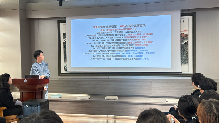 在随后的互动交流环节中,现场同学反响热烈,踊跃提问。问题聚焦于“如何迈出参与高水平竞赛的第一步”“如何有效管理时间以兼顾学业与项目研究”“在遭遇瓶颈时如何调整心态并寻求突破”等同学们普遍关心的议题。三位分享人结合自身经历,倾囊相授,以幽默风趣的语言和深刻独到的见解,为同学们答疑解惑,指明了前行的方向,赢得了阵阵掌声。