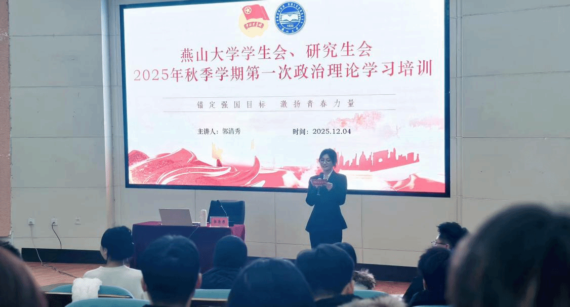为深入学习贯彻党的二十届四中全会精神,引导青年学生骨干深刻把握教育、科技、人才一体化推进的战略部署,自觉将个人发展融入强国建设、民族复兴的伟大征程,2025年12月4日,校团委在东校区大学生活动中心209室组织开展“锚定强国目标,激扬青春力量”专题政治理论学习。燕山大学学生会、研究生会全体成员,各学院研究生会主席团成员以及学校第28届研究生支教团全体成员参加学习。