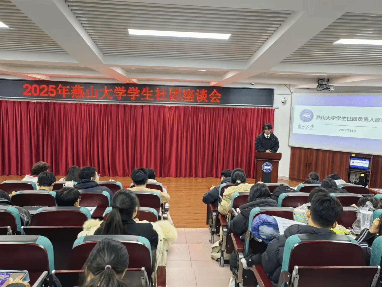 为进一步加强学生社团规范化建设,校团委于11月27日在三教213举办2025年燕山大学学生社团负责人交流座谈会。会议围绕学生社团注册、年审、活动备案、骨干培养等核心问题进行详细说明,强调学生社团要坚持思想引领为先,聚焦学风建设与校园文化传播双重使命。