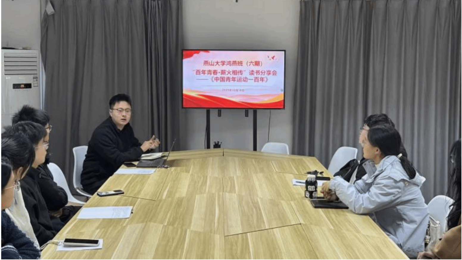10月18日下午,燕山大学“青马工程”大学生骨干培训“鸿燕班”(六期)开展“百年青春·薪火相传”读书分享会,围绕《中国青年运动一百年》一书,组织青年学子阅读交流与心得分享,回望百年青年奋斗征程,感悟新时代青年的责任与使命。