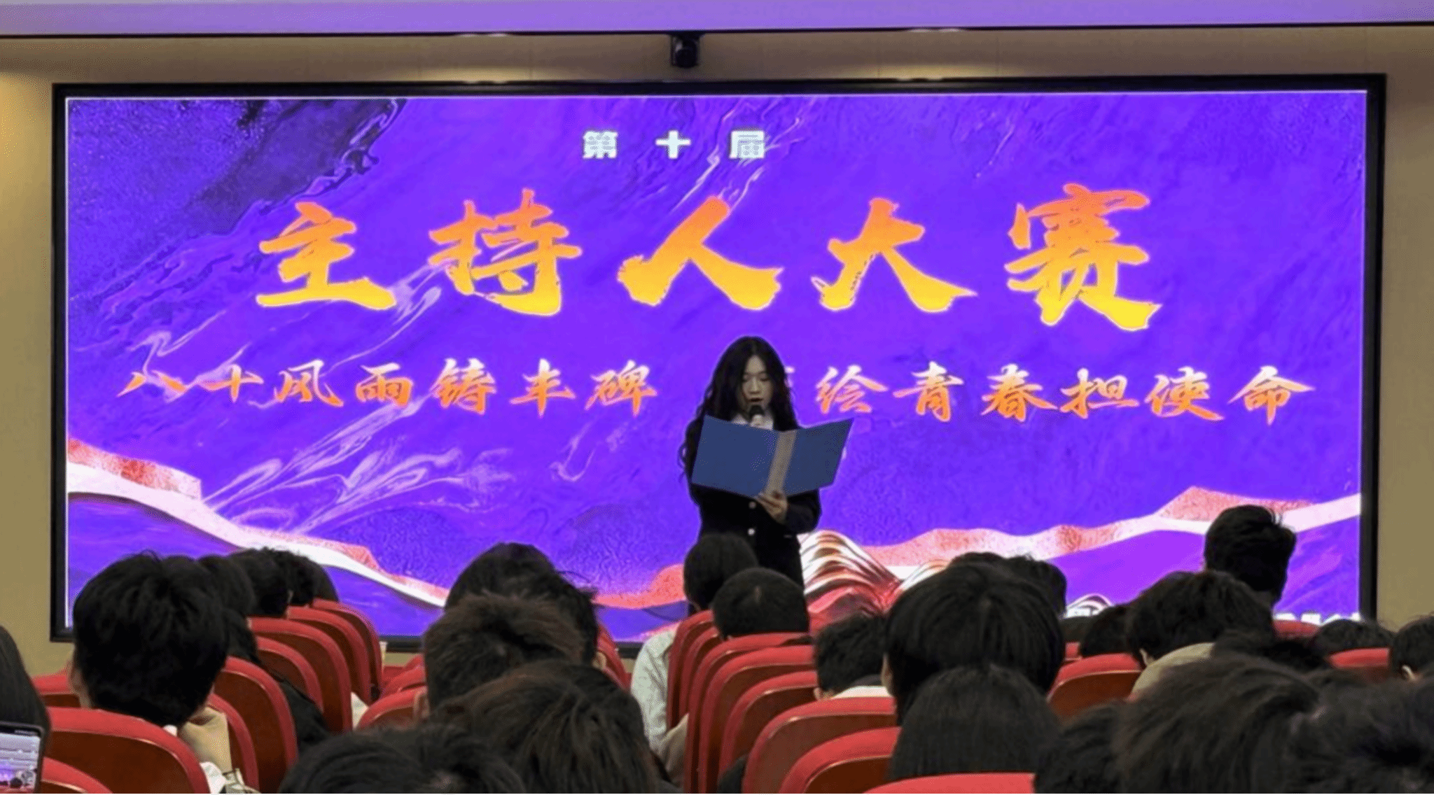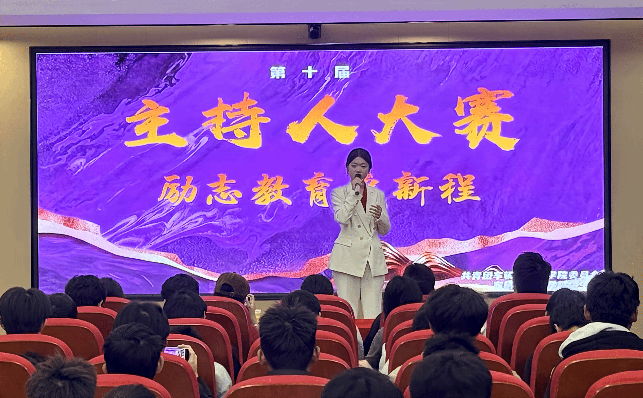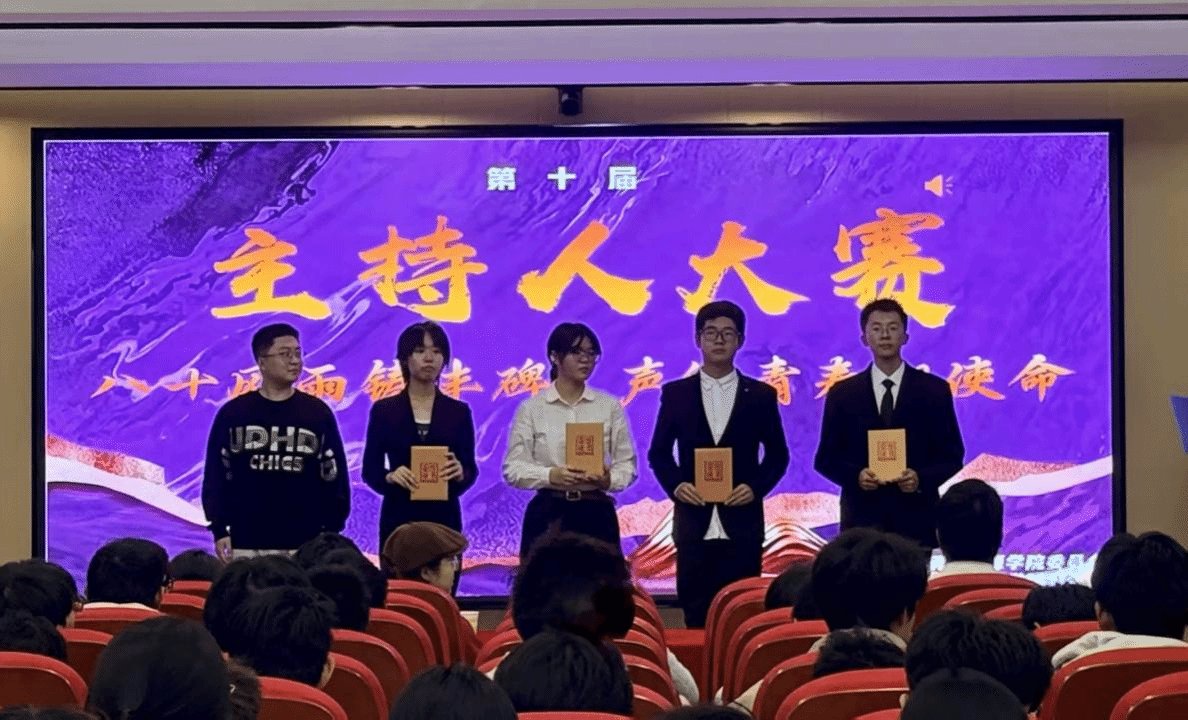 本次主持人大赛不仅是一次才艺的展示,更以“声”为媒,激励青年学子发扬实干精神。展望未来,我们期待更多的同学能够勇敢地站在舞台上,用自己的声音传递正能量,用才华书写无愧于时代的青春篇章!