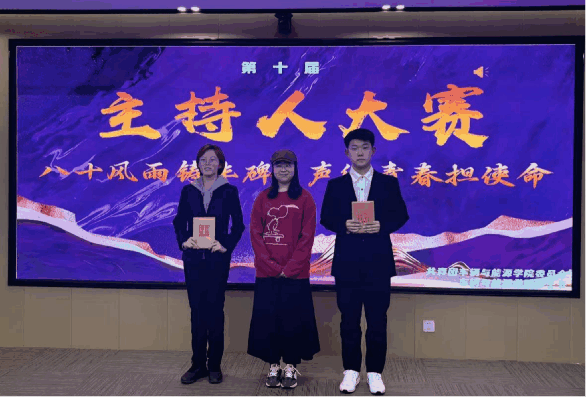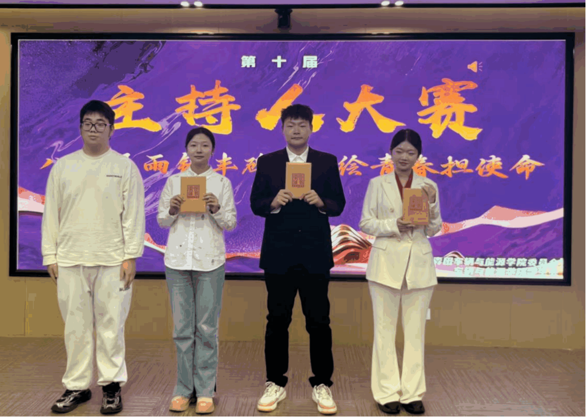 经过激烈角逐,一批优秀的主持人脱颖而出:尹鑫获得一等奖;谈雨昕、肖镇东获得二等奖;王璐蓥、王悦、田润阳获得三等奖;牛紫兰、郝亚欣、焦柏然、武山瑛获得优秀奖。他们的表现不仅彰显了个人魅力,还为现场观众带来了一场精彩的视听盛宴,丰富了同学们的文化生活。
