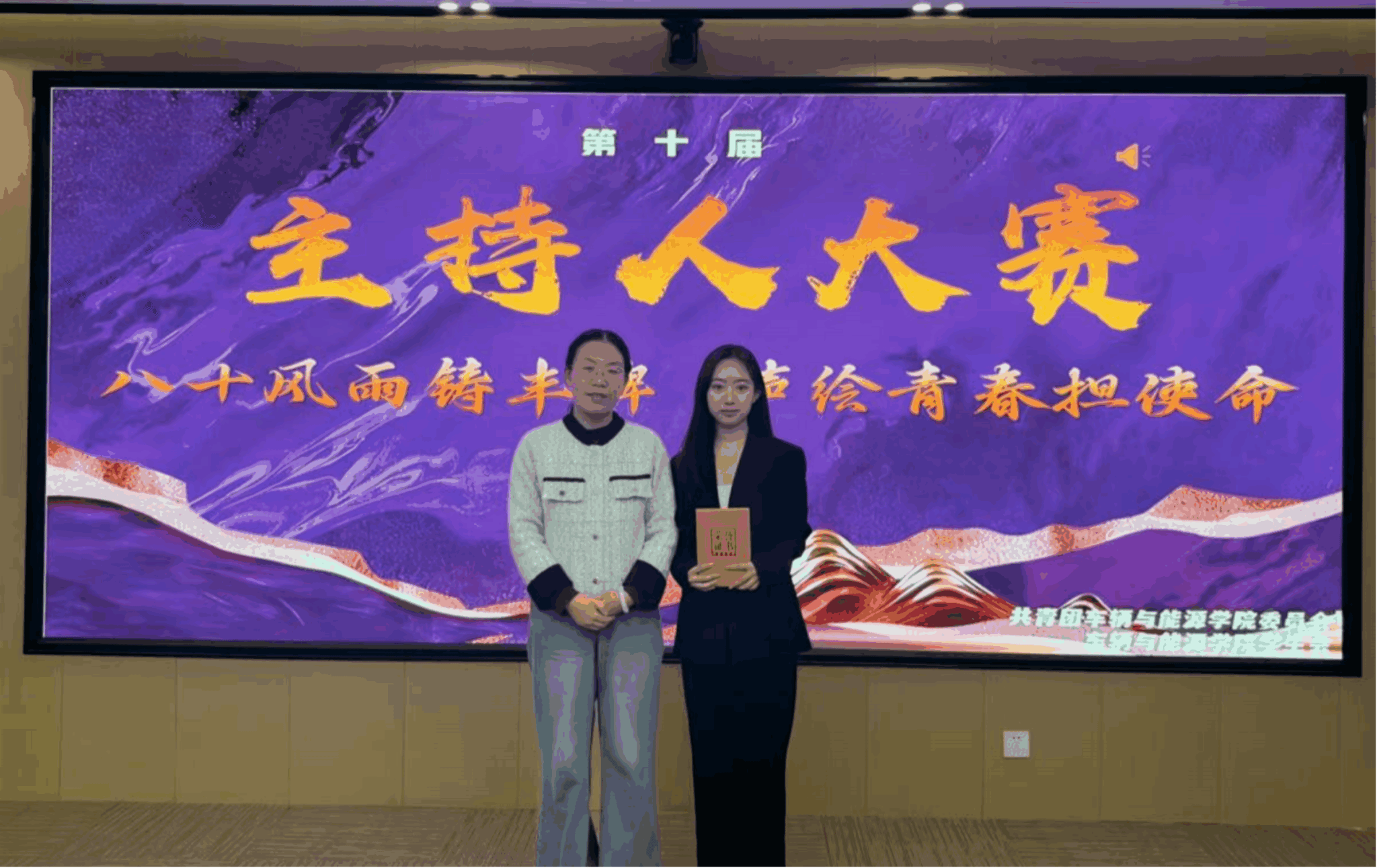 2025年11月14日18:00,燕山大学车辆馆317室内气氛热烈,车辆与能源学院以“八十风雨铸丰碑,声绘青春担使命”为主题的第十届主持人大赛决赛在此正式拉开帷幕。本次比赛历经两周的筹备选拔,最终晋级选手在决赛舞台上展开激烈角逐。决赛邀请车辆与能源学院团委书记杨春婧、2025级辅导员朱银玲、燕山大学广播站负责人张搏、学院党务中心主任袁宇晨、学院党务中心部长刘星雨担任评委,第九届主持人大赛一等奖获得者莫骄扬担任主持。初赛和决赛分别邀请“华燕之声”选手献歌暖场。全场比赛不仅展现了选手们的主持才华,更彰显了爱国情怀与青春热情!