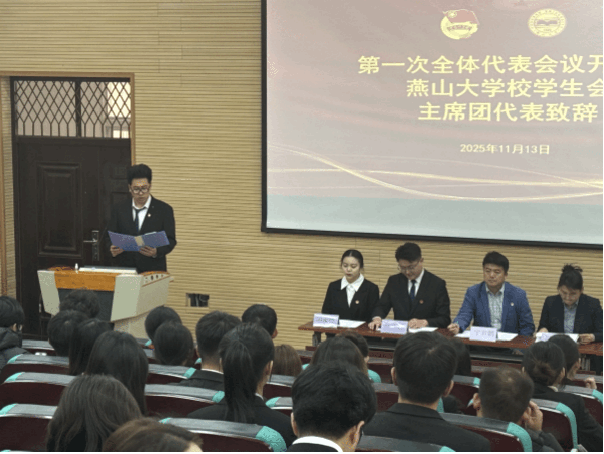 燕山大学学生会主席团成员徐章铭和研究生会主席团成员许哲分别代表学校学生组织致辞,对学院团学组织在思想引领、志愿服务、实践育人和创新创业等方面取得的成绩给予肯定。他们希望各位代表继续保持昂扬向上的精神风貌,勇于担当、主动作为,推动学院学生组织工作再上新台阶。