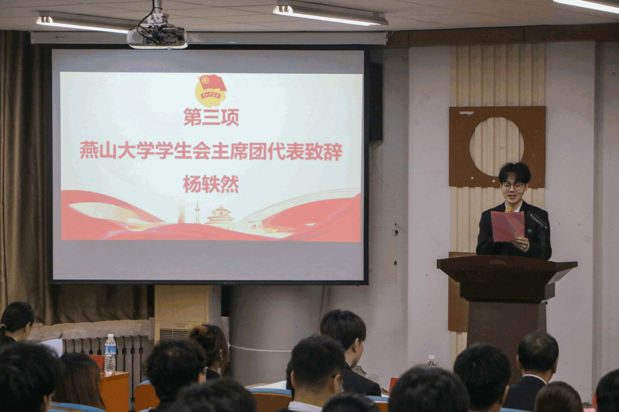 校学生会主席团成员杨轶然致贺。他表示校学生会将一如既往支持学院团学工作,并期待新一届学生委员会继续团结带领青年成长进步。