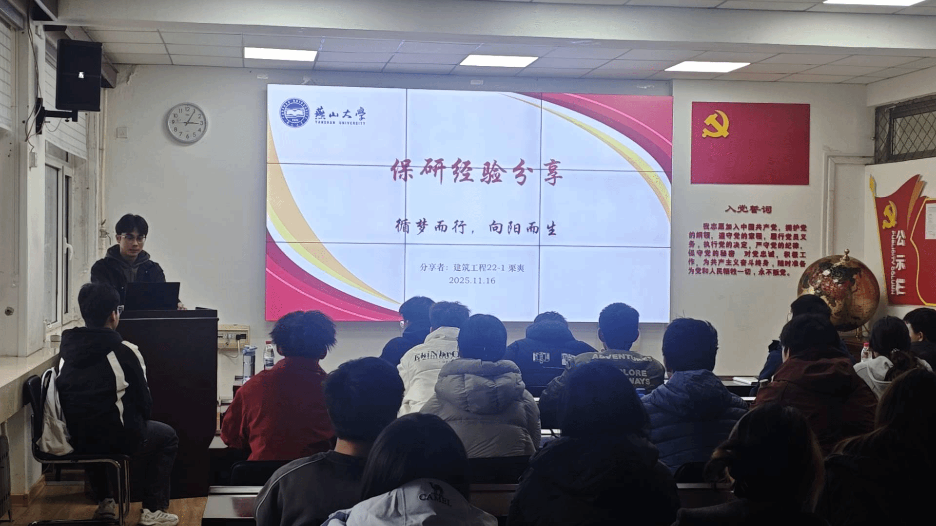 在专业分享环节,各位学长结合自身经历,将宝贵经验倾囊相授。土木工程专业的栗爽学长从“绩点提升策略”和“竞赛选择技巧”两个维度深入剖析,强调了学业成绩在推免过程中的重要性,并分享了如何选择高含金量创新创业竞赛的心得体会。岩土工程方向的郑宏伟学长则以“学科交叉与科研创新”为切入点,详细介绍了如何通过参与科研项目提升综合竞争力,实现推免加分的实践经验。力学专业的张子恒学长聚焦“高效时间管理”,通过展示其精心设计的“学期任务拆解表”,生动演示了如何平衡课程学习、科研训练与推免准备的技巧。建环专业的王晨曦和张鹏飞学长分别就“夏令营投递策略”和“预推免心态调整”展开分享,前者系统梳理了院校选择的科学方法,后者则以亲身经历鼓励同学们在推免路上保持积极心态。