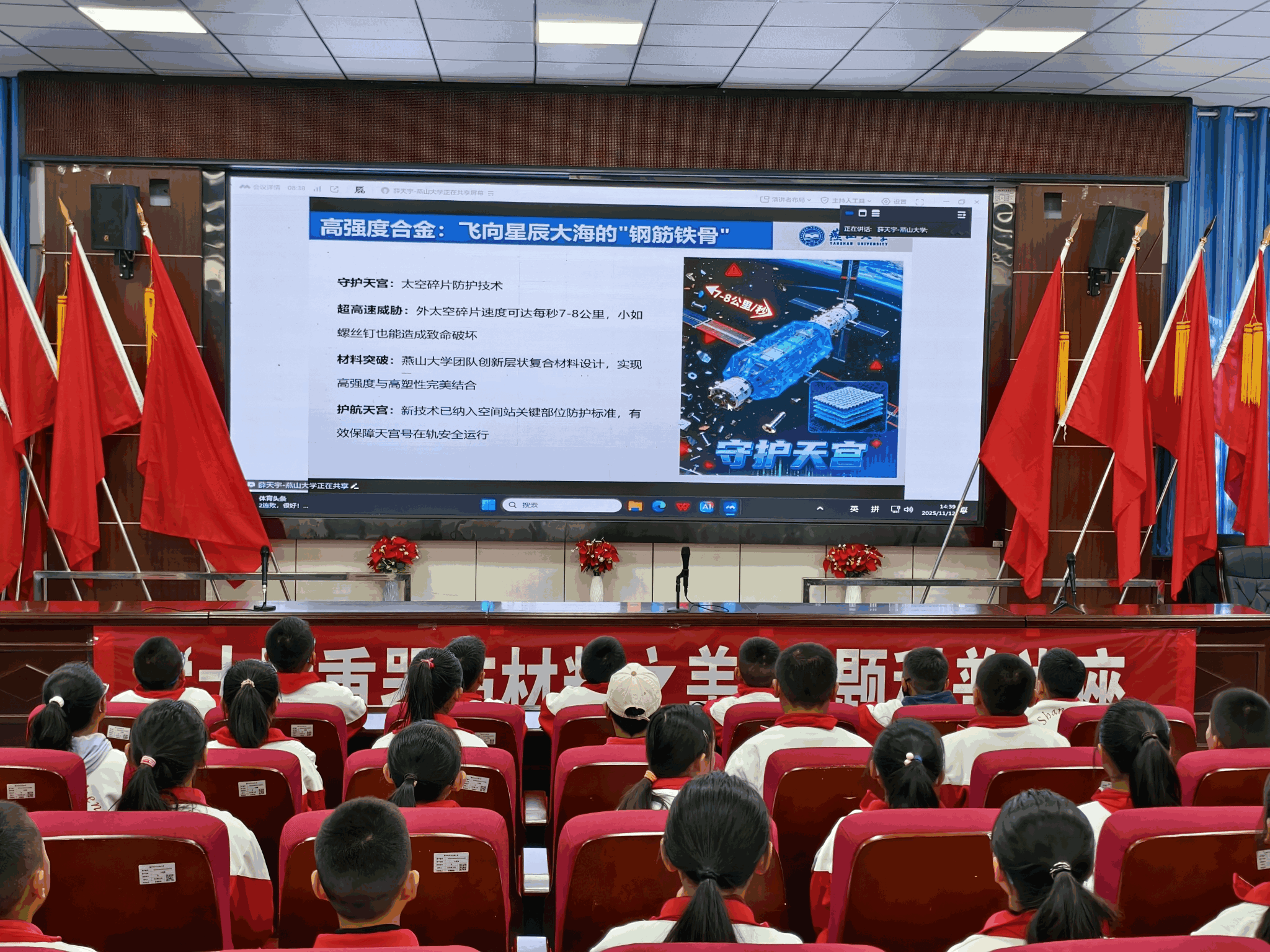 为深入贯彻落实《全民科学素质行动规划纲要(2021—2035年)》,充分发挥高校在科技创新与人才培养方面的优势,推动科普教育资源有效服务西部基层,11月12日材料科学与工程学院、亚稳材料全国重点实验室“师生协力”科普团为青海省德令哈市长江路小学的师生们带来了一场精彩纷呈的“大国重器与材料之美”主题科普讲座。讲座由薛天宇教授主讲,为西部小学的孩子们打开了一扇通往材料科学奇妙世界的大门。