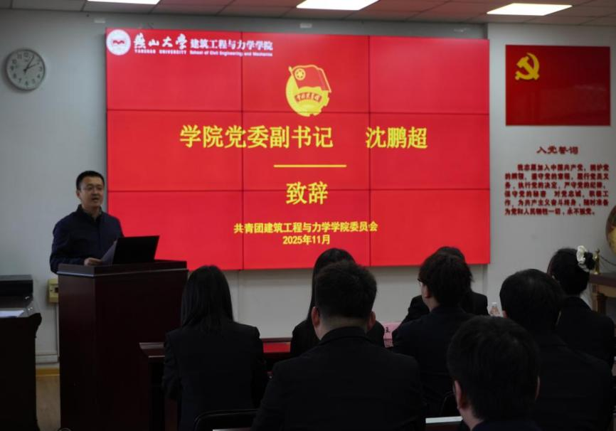 沈鹏超代表学院党委做了题为《青春聚力同行,砼构时代华章》的讲话。他对我院学生组织在思想引领、学风建设、学科竞赛和志愿服务等方面所做的工作给予肯定与赞扬。他向广大同学、团学骨干、学生组织提出了新的希望和要求:一是各学生组织要认真学习领会党的二十届四中全会精神,坚持党的领导,提升政治站位,增强围绕中心、服务大局的意识和能力;二是所有团学干部要不断加强个人修养与专业能力的提升,在学习与实践中磨砺本领;三是要坚持组织改革与自我教育相结合,不断提升服务意识和工作质量,为“十五五”期间学院高质量发展贡献青春力量。