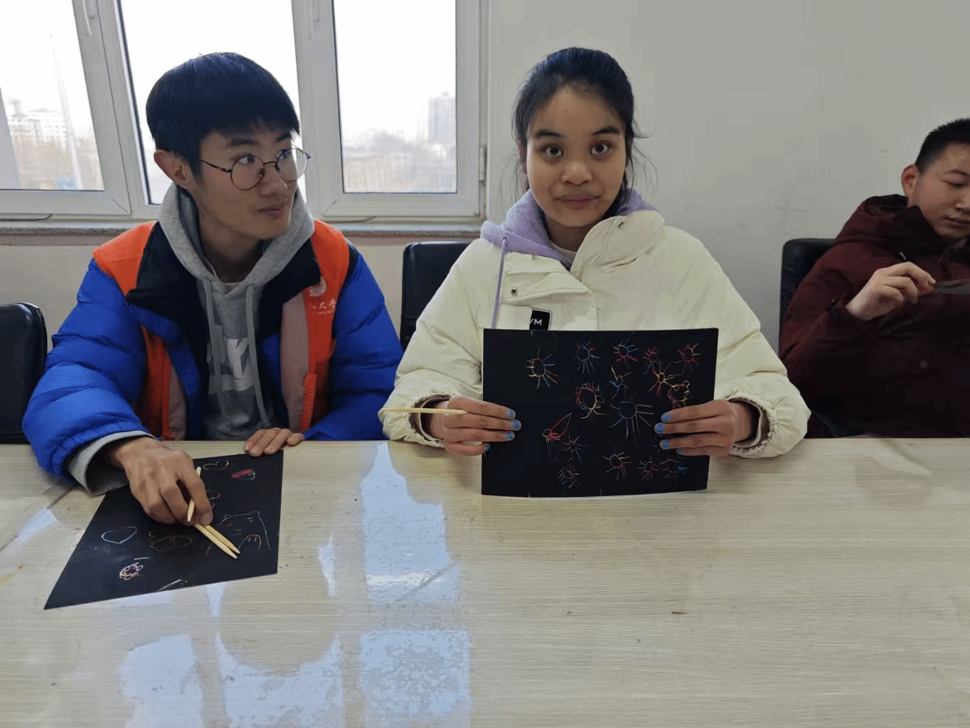 活动中,志愿者与孩子们共同参与彩色刮画、趣味折纸等艺术手工环节。一张张素卡幻化为斑斓画卷,一只只纸鹤在稚嫩双手中展翅欲飞,艺术成为连接心灵的无声桥梁。户外气球游戏和简易体操环节中,志愿者牵手孩子跳跃奔跑,在欢笑中促进身体协调,在互动中增强社交信心。全程志愿者坚持耐心倾听、细心观察、温和引导,尊重个体差异,守护每一份独特的表达。“原来沉默也可以很温暖,一次牵手、一个微笑,都可能是打开世界的钥匙。”一名志愿者感慨道。