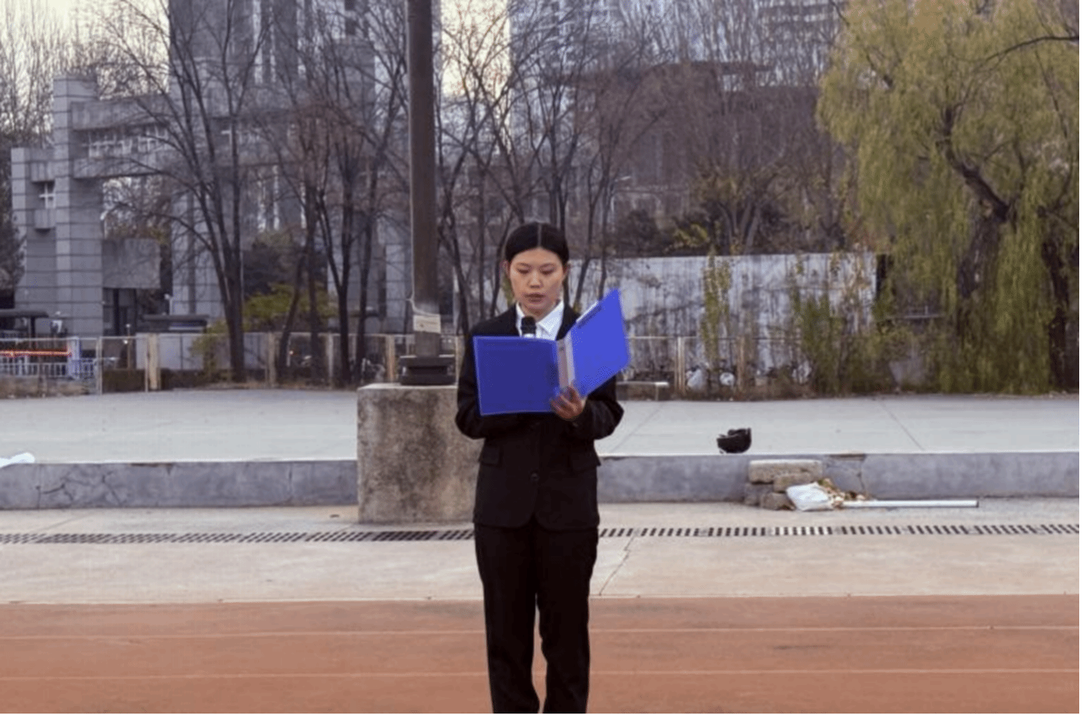外国语学院团委副书记邹金珊对升旗仪式做总结发言