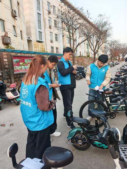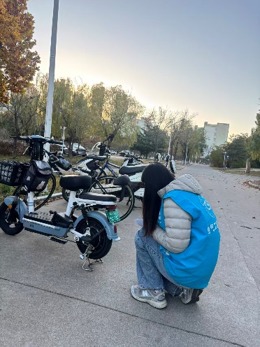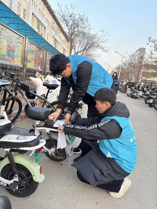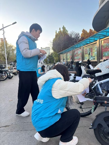 自活动筹备起,研究生会成员便展现出高度的责任心与细致的规划能力。他们提前进行区域踏勘,明确禁停范围与清扫区域,并备齐告知单、清洁工具等物资。志愿者们分为清扫组、张贴组与搬运组,各小组任务明确,分阶段推进。张贴组志愿者分两批次率先行动,对广场禁停区域内的电动车逐一张贴《违停告知单》,并进行拍照记录,为后续规范治理奠定了良好基础。