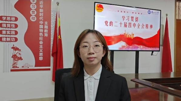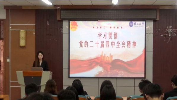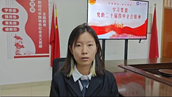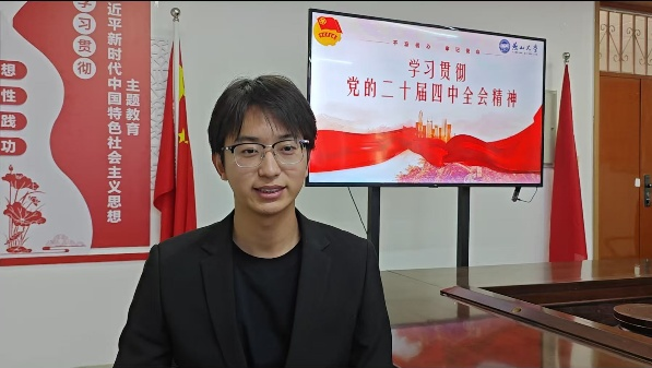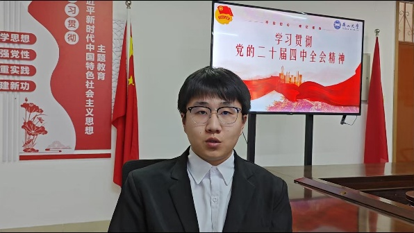本次专题学习共分三个环节。首先,学院团委学生兼职副书记王梓璇带领与会学生骨干集中观看学习视频,充分认识党的二十届四中全会的重要时代意义,深入体会“十四五”时期的重大成就,准确把握“十五五”时期的重要地位。