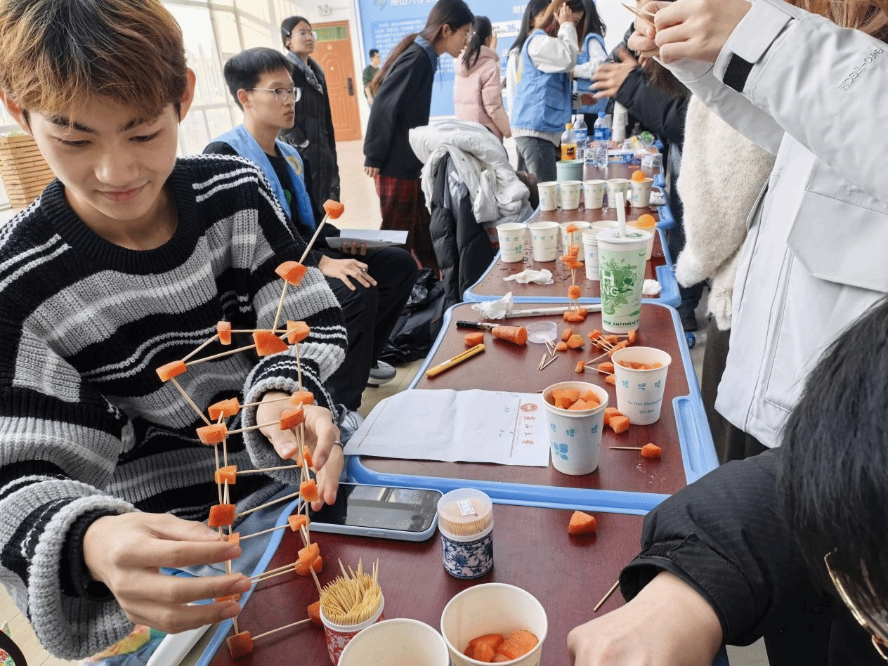 本次科技节涵盖内容丰富、形式多样,将知识性、趣味性与教育性有机融合,吸引了全院学生广泛参与。在科技实验类活动中,同学们通过“污水净化技术卡牌对抗赛”展开双人对决,在“污水卡”与“治理卡”的博弈中加深了对水处理知识的理解;而“科普大闯关”则设置了空气炮打纸杯、小球过河、胡萝卜堆高塔等游戏环节,让学生在实际操作中直观感受压缩空气、力学原理与结构稳定性的科学奥秘,寓教于乐,激发了大家探索科技的热情。
