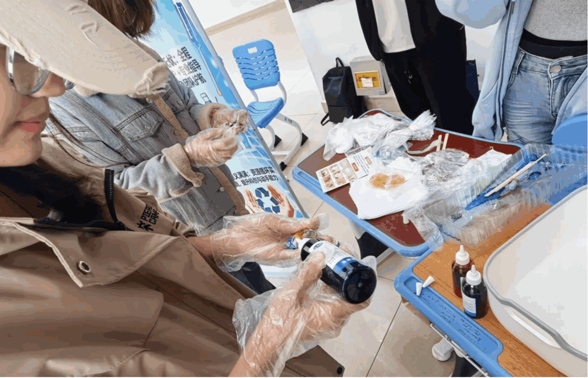手工实践类活动同样精彩纷呈。天然染料扎染体验中,同学们从洋葱、紫甘蓝等植物中提取色素,亲手在手帕、布袋上创作出独具风格的图案,强化了同学们“绿色、环保”的理念。手工皂制作活动则融合了红色教育主题,学生们在志愿者指导下制作出五角星等造型的手工皂,将爱国情怀与环保意识融入实践过程,以创新的形式诠释了青春的价值追求。