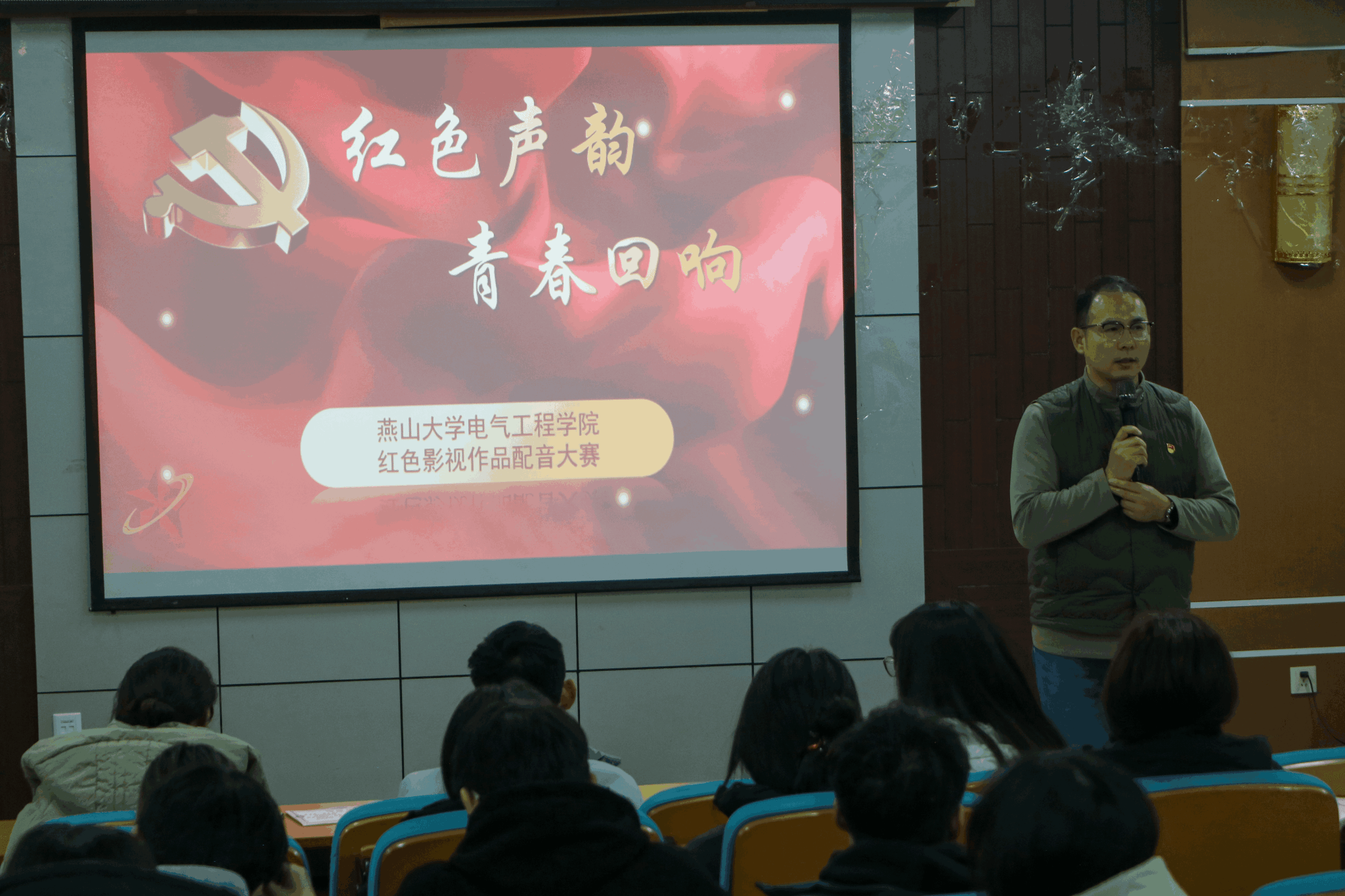 为传承红色基因、赓续精神血脉,丰富校园文化生活,2025年11月27日下午,由燕山大学电气工程学院主办的“红色声韵 青春回响”红色影视作品配音大赛在电气工程学院A104成功举办。