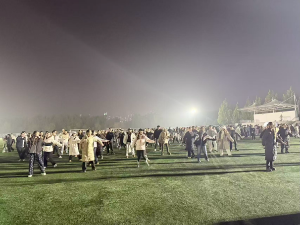 “艺起舞动”活动同样精彩绝伦。活动以“人人可参与、人人是主角”为理念,精心编排多支融合流行节奏的广场舞,动作设计兼顾趣味性与健身性。当音乐响起,领舞同学率先登场,无论是课后放松,还是专程前来的同学们纷纷加入,真正实现“零门槛、全开放、共参与”。本学期活动创新实施“运动+娱乐”模式,与校学生会“夜跑计划”深度联动,以活力热舞作为夜跑序章,既实现科学热身,又拓展参与群体,形成“舞动-奔跑-互动”的运动链。
