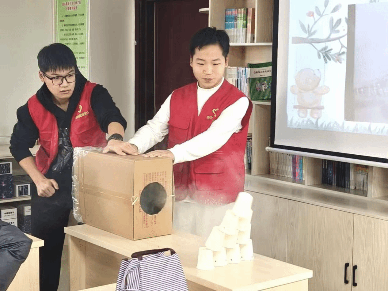 本次科普活动共设两期,以趣味形式为小朋友打开物理世界的大门。第一期聚焦物理知识传授,志愿者围绕 “涡环现象” 展开:先从生活场景切入,举例讲解自然界与日常中常见的涡环现象,帮小朋友建立认知;随后拿出 “空气炮” 小玩具现场演示,灵动的气流环瞬间吸引孩子们的注意力,激发探索热情;最后总结原理,让抽象知识变得直观易懂。第二期则带领小朋友挖掘纸的趣味用途 ——搭建纸桥。志愿者先讲解纸桥搭建方法,顺势引出 “三角形稳定性”的核心知识;讲解结束后,小朋友们跃跃欲试,亲手进行实验操作,在折叠、拼接与搭建中,亲身感受结构力学的奇妙,在实践中加深对知识的理解,课堂氛围热闹又充实。