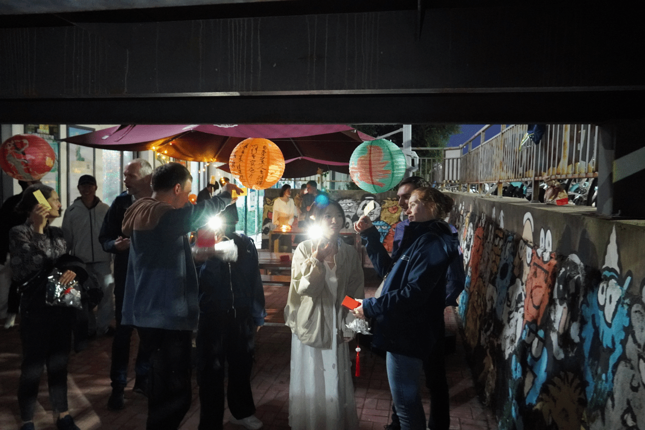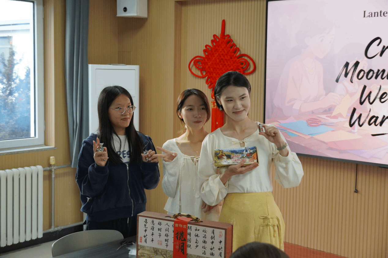 随后,巧手做花灯和趣味猜灯谜环节将活动推向高潮。现场提供中秋主题花灯手工材料,外教与同学们共同制作花灯,制作过程中穿插猜灯谜环节。谜题融合中文趣味与文化常识,让中外师生在互动中加深了对中国传统习俗的认知,体验到了“手提明月光”的节日浪漫。