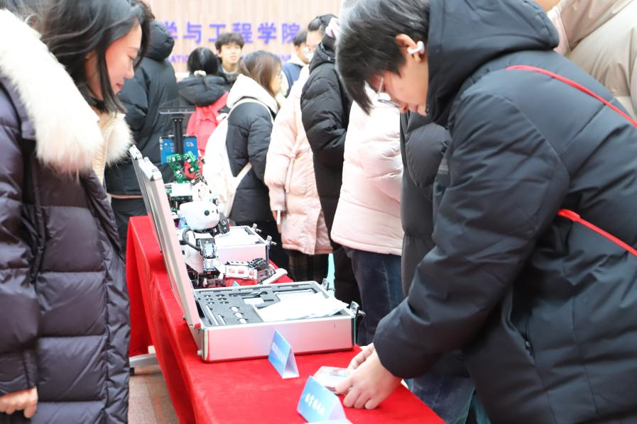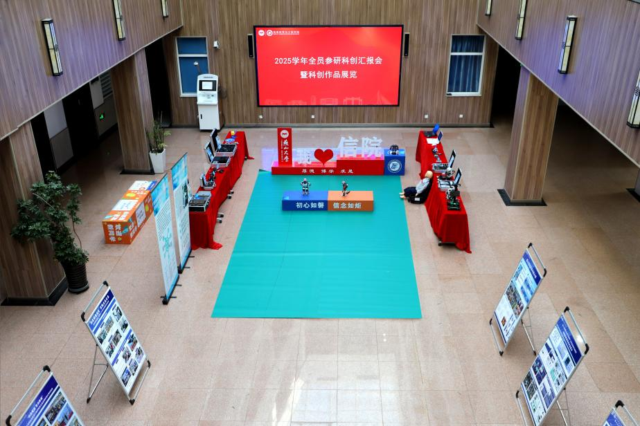汇报会结束后,参会师生共同前往信息馆1号楼大厅参观科创作品展览。本次展览集中展出了同学们在各类科创竞赛和大创项目中取得的成果及获奖作品,进一步激发学生钻研技术、投身实践的热情。
