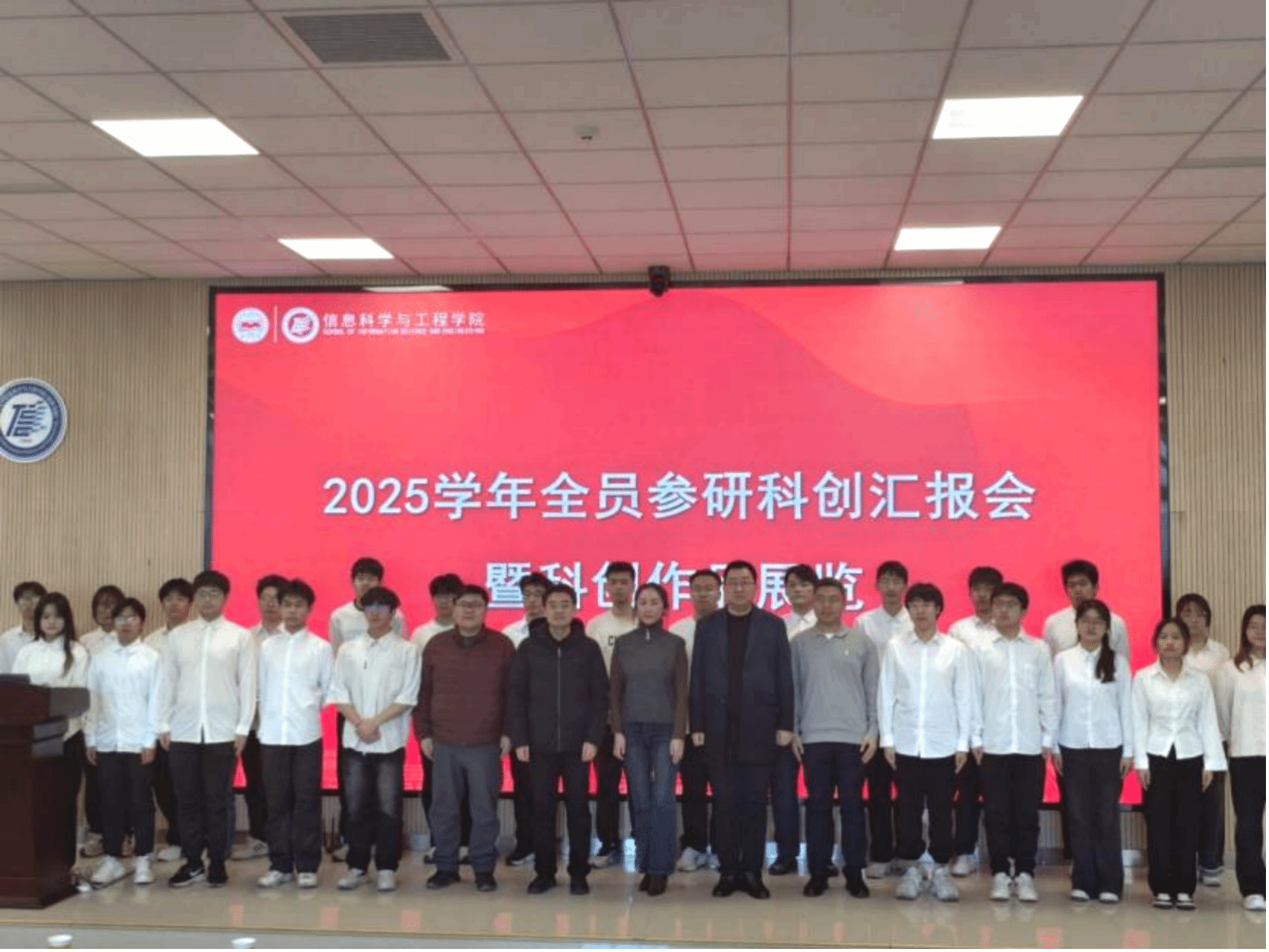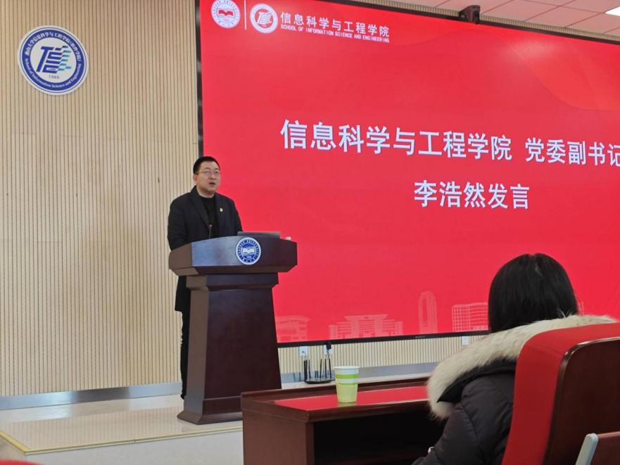 12月31日上午,信息科学与工程学院于信息馆行知厅举办2025学年全员参研科创汇报会暨科创作品展览。学院正处级辅导员苏静、副院长顾广华、党委副书记李浩然、副处级辅导员刘学才、团委书记邹楠出席活动,本科各年级学生代表参加此次活动,会议由辅导员张子超主持。