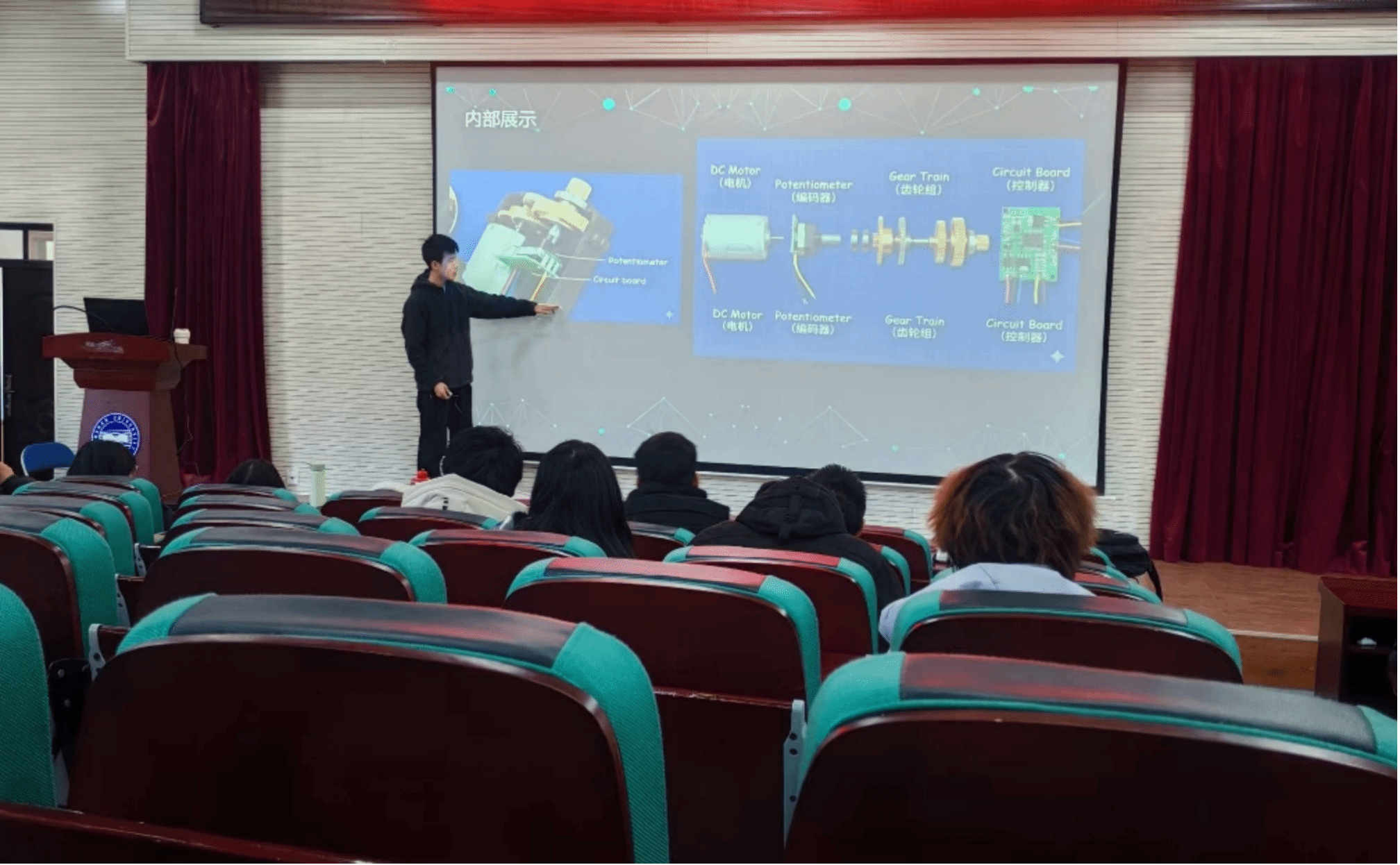 本次科创实践活动采用“项目式”教学管理,通过“边教边学、边学边做”的实践教学模式开展。活动期间,全体参与学生分为6个小组,集中在机械馆J3教室和河北省机器人与智能装备科普示范基地进行统一学习与实践组装。在活动前期,助教学长围绕项目实施所需的基础知识和关键技能开展集中教学,内容涵盖机器人结构组成、基本控制原理、程序逻辑以及调试方法等,为后续实践打下必要基础,引导同学们理解从理论到工程实现的转化过程,提升工程素养。