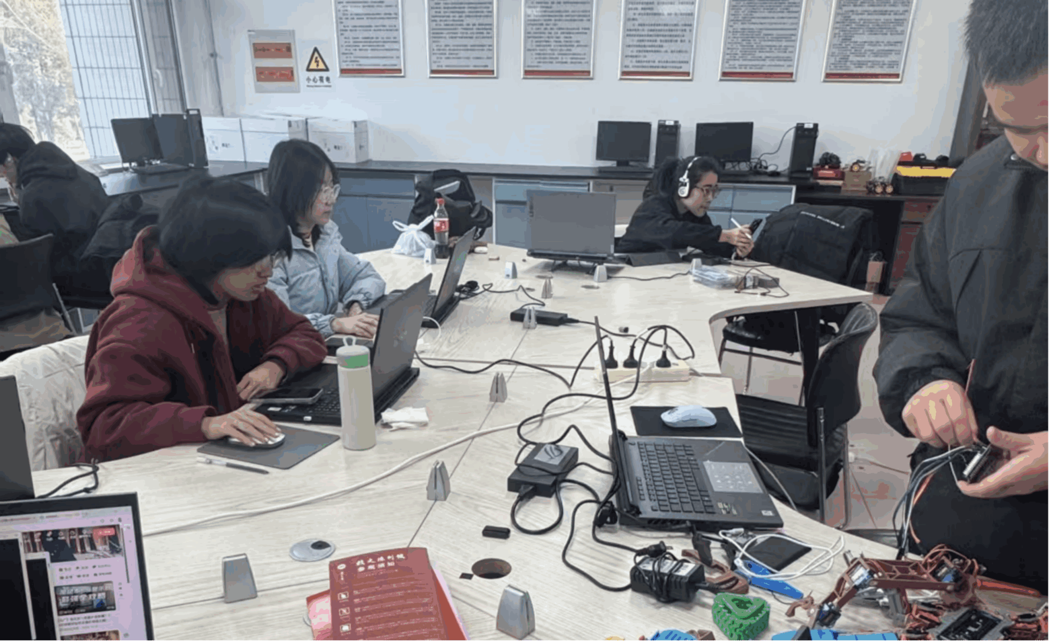 进入组装测试阶段后,各小组围绕六足仿生机器人和“小智”AI桌面智能机器人项目展开小组协作式实践探索,分工完成结构搭建、程序编写与系统调试等任务,在实际操作中不断发现问题、分析问题并尝试解决。通过集中学习与自主实践相结合的方式,同学们逐步完成了项目从设计到实现的全过程,加深了对专业知识的理解,也在实践中提升了动手能力和团队协作意识。