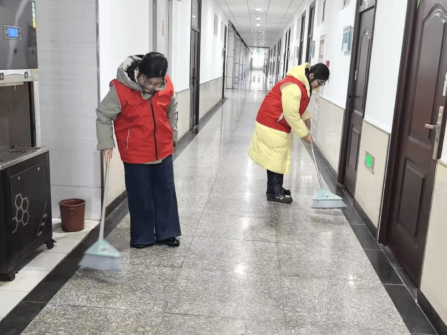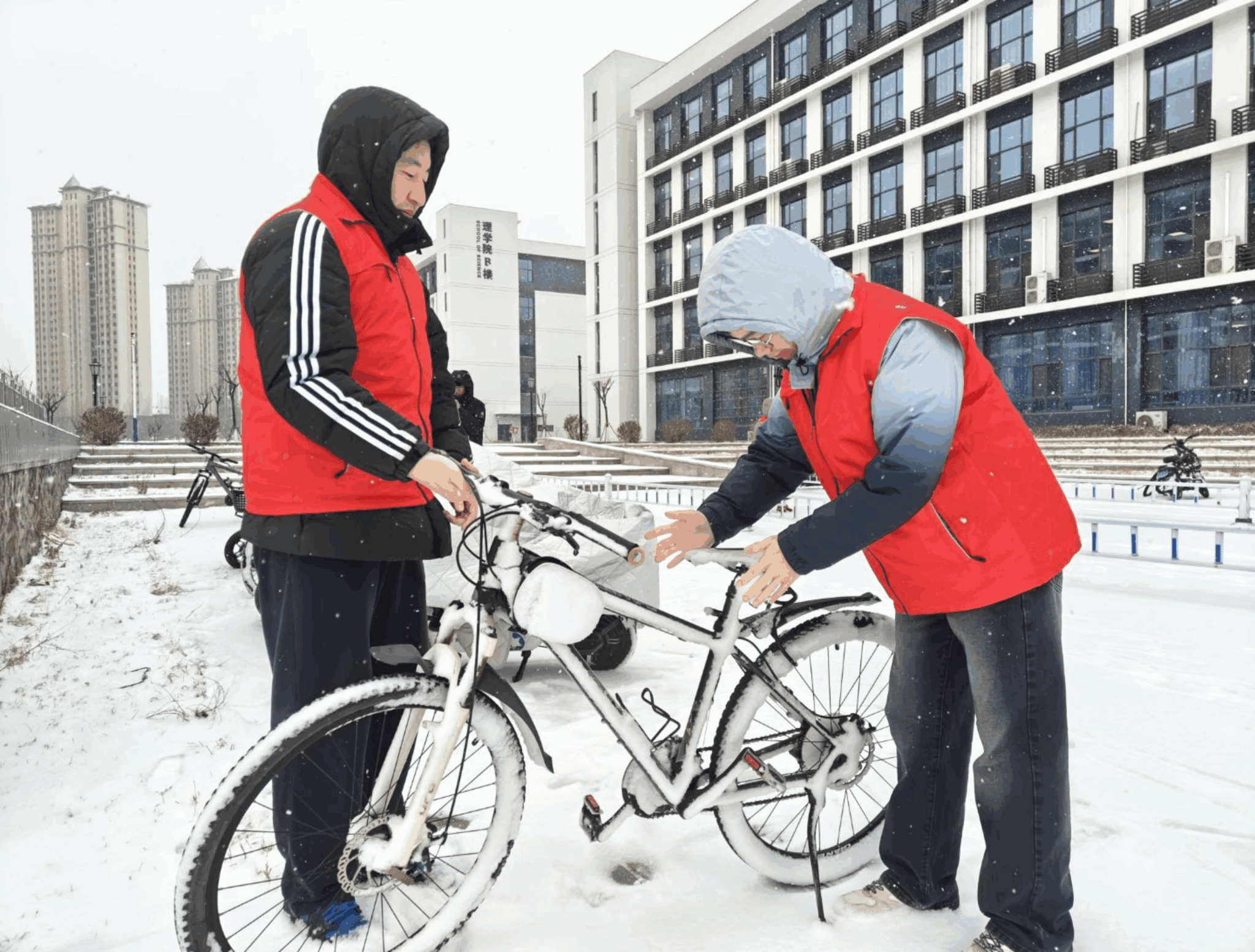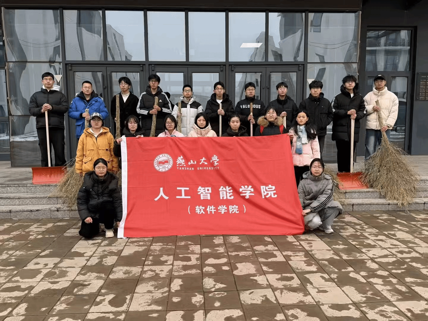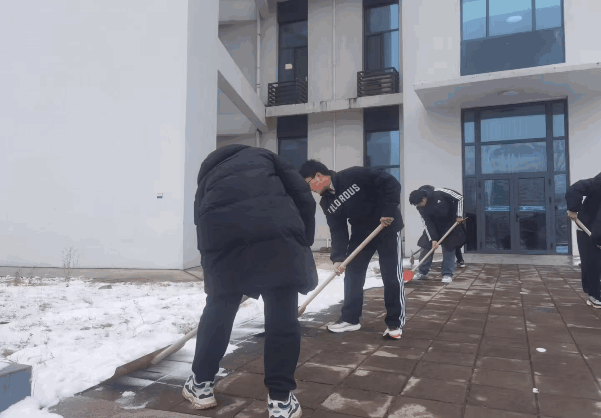 在“燕行清尘·共守书香”行动中,志愿者们迎寒而上,分工协作,全面清扫路面积雪、深度清洁公共区域。从路面扫雪铲冰到室内地面拖洗、杂物清理,志愿者们用实际行动扫出“平安路”,擦亮“文明窗”,为冬日的校园增添了别样的温暖与亮色。