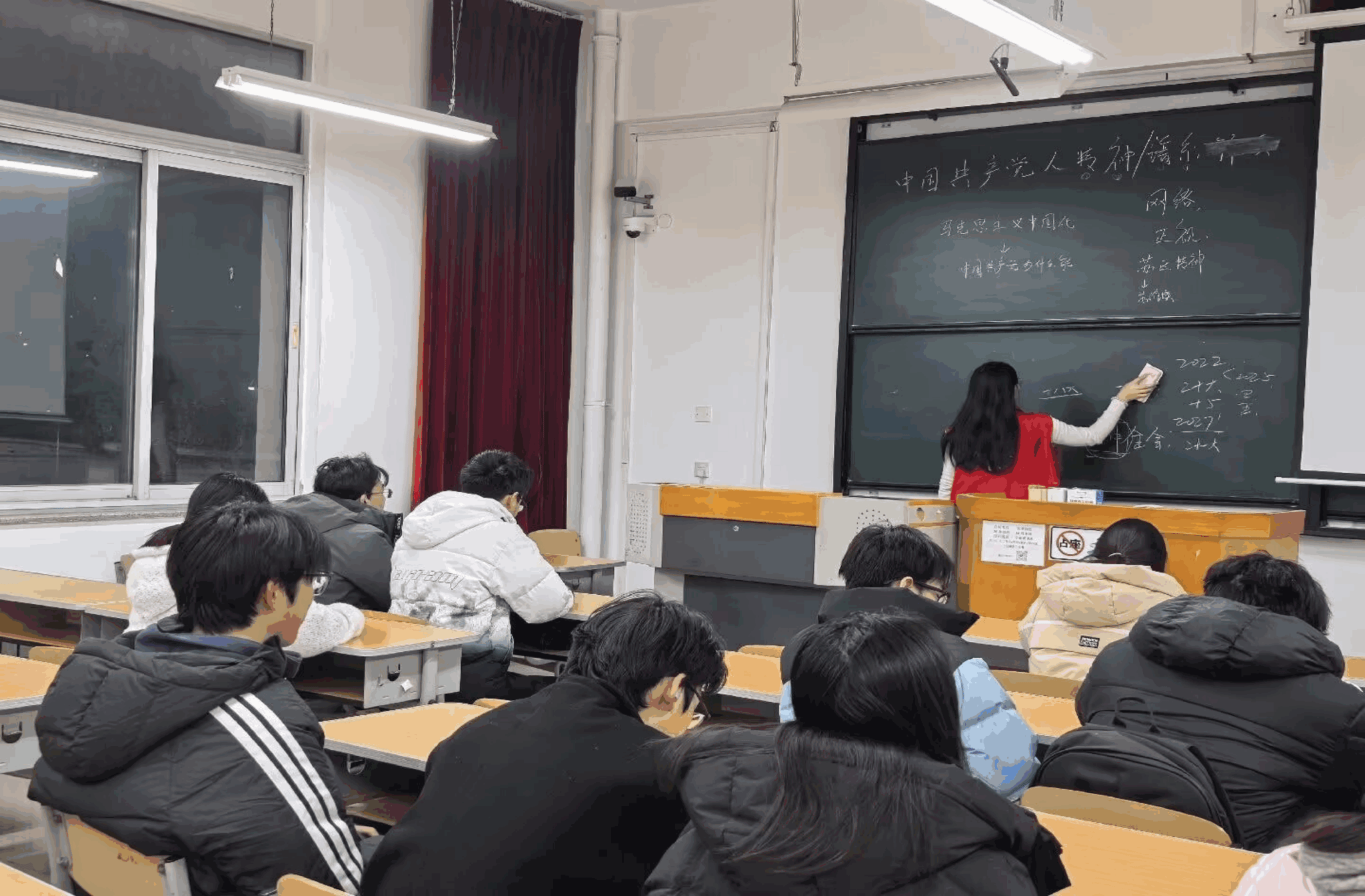 图1志愿者擦拭黑板,以行动筑牢课前服务防线