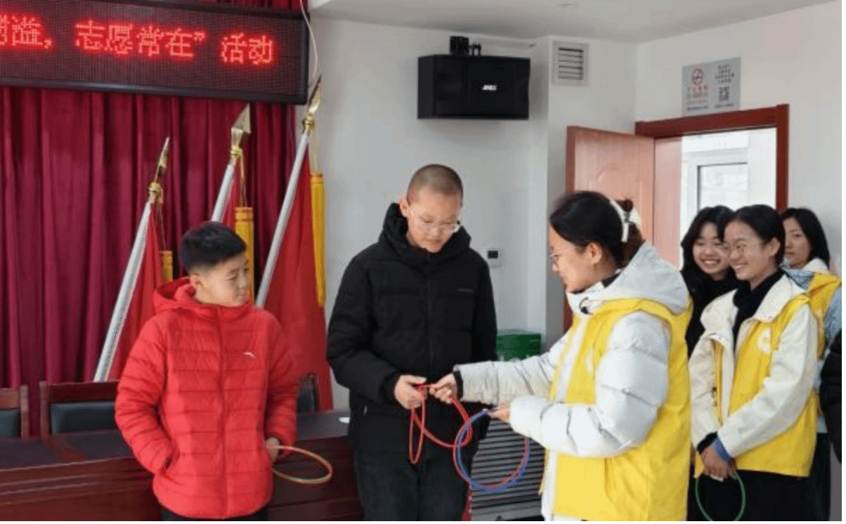 活动过程中,志愿者们还为孩子们准备了趣味套圈小游戏,准备了笔、本、毛绒挂件等丰富奖品。大家手把手教孩子们掌握套圈技巧,鼓励他们勇敢尝试,现场笑声不断、热闹非凡。孩子们在游戏中收获了快乐与奖品,志愿者们也在互动中传递了陪伴的力量,让童真与善意在彼此间流淌。活动尾声,大家合影留念,定格下这份温暖的志愿瞬间。