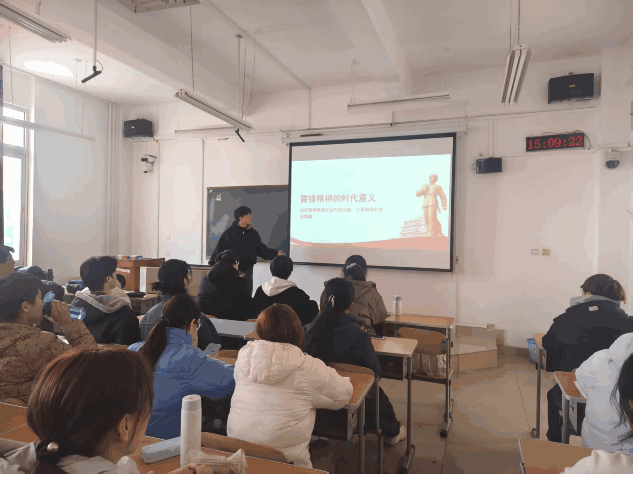 活动以“雷锋故事会”拉开序幕。各班团支部书记通过图文并茂的PPT,带领同学们重温了雷锋的成长历程。当讲到雷锋在暴雨中护送陌生大娘回家、利用休息时间帮战友洗衣服等事迹时,现场气氛热烈,不少同学感慨:“雷锋用行动证明,伟大出自平凡,英雄来自人民。”在互动环节,团员们结合自身经历分享感悟,有人提到志愿服务时的收获感动,有人分享进社区服务的温暖瞬间,纷纷表示要以雷锋为镜,在奉献中实现人生价值。为深化理解,活动设置“雷锋精神大家谈”研讨环节,同学们围绕“螺丝钉精神”展开讨论,一致认为,雷锋的“挤”和“钻”精神对专业学习具有启示意义,而“干一行爱一行”的敬业态度则是未来职业发展的宝贵品质,而当代雷锋群像,正以多元且生动的姿态,在新时代的各个领域熠熠生辉,成为践行雷锋精神的鲜活范本。团员们纷纷表示:“雷锋精神不仅是助人为乐,更是爱岗敬业、精益求精的工匠精神,是我们在学习和生活中应具备的品质。”
