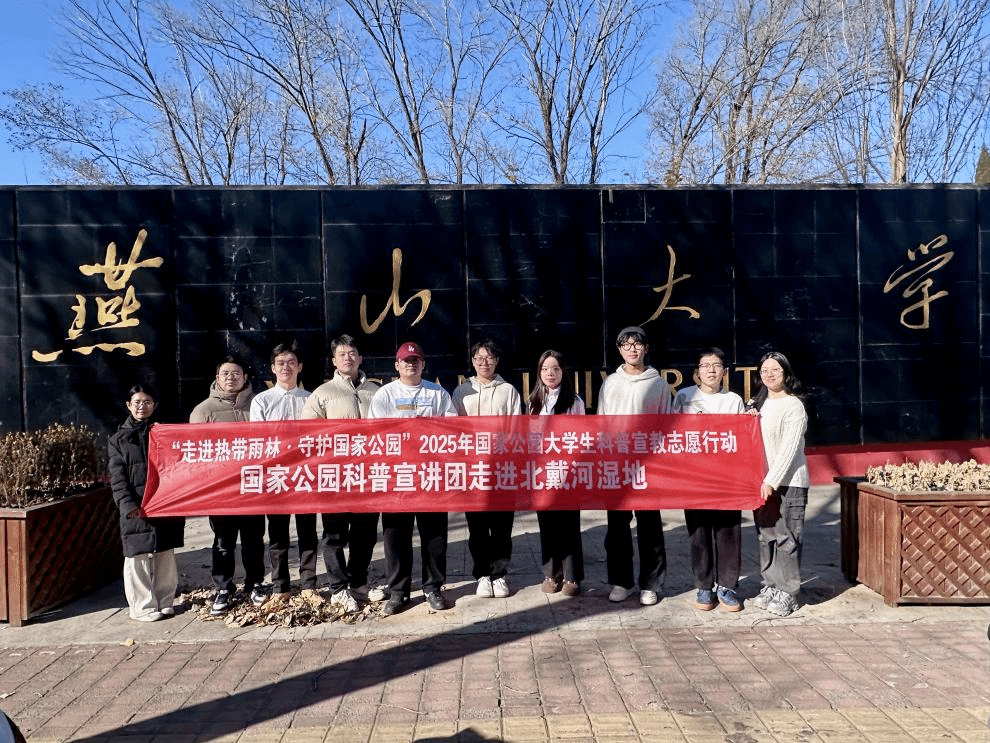 2025年,燕山大学“鸥鸣潮声”守护队成功入选以“走进热带雨林·守护国家公园”为主题的国家公园大学生科普宣教志愿行动。北戴河湿地的生态分量让来自外国语学院、文法学院、艺术学院、车辆与能源学院、信息科学与工程学院、经济管理学院等多个专业的十名学子在此汇聚,将专业知识转化为生态保护的实际行动。队长、新闻通讯员董秦将国别和区域研究的学科思维引入实践,将北戴河湿地这一“西太平洋迁飞通道”上的关键节点置于全球生态治理的格局中并加以审视。国别和区域研究的学科思维,不仅帮助团队在科普宣讲中讲好了本地故事,更以国际比较的视角引入国外候鸟保护的成熟经验,让生态守护既有家乡情怀,也有国际视野。