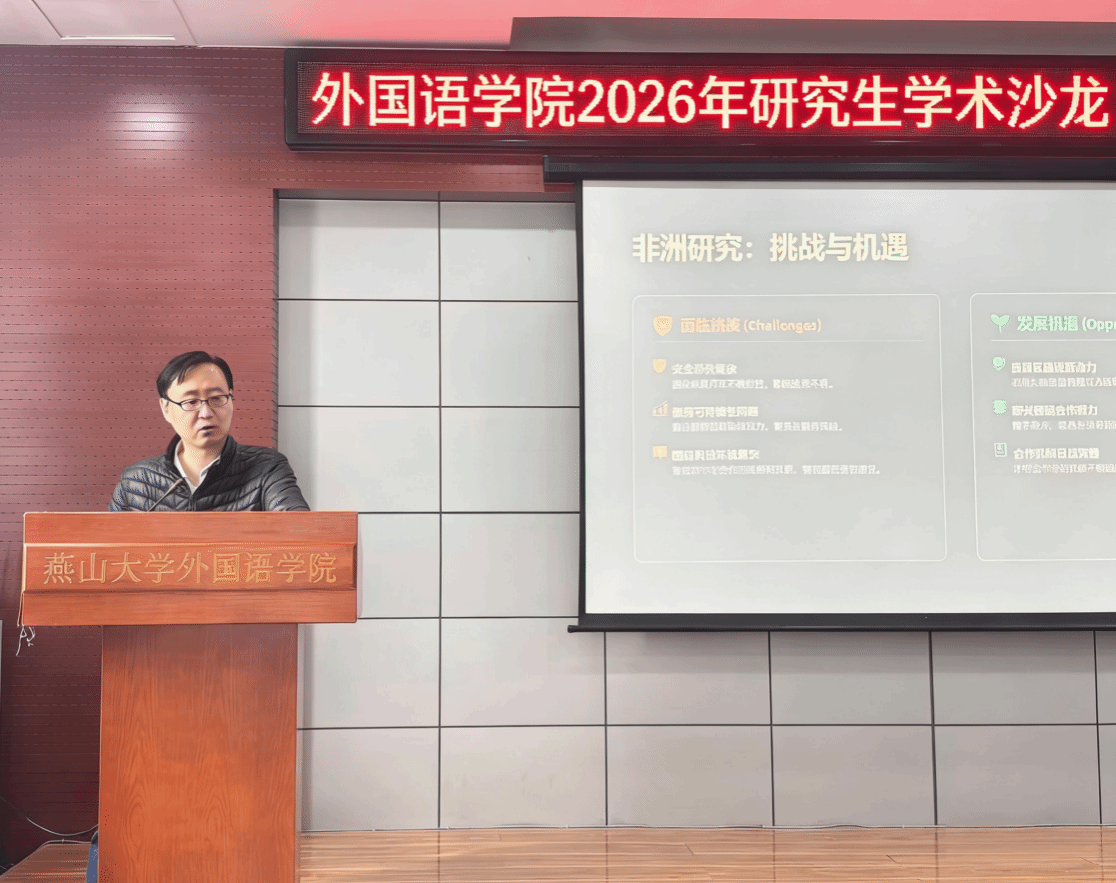 学术之道,贵在交流;治学之要,在于思辨。2026年3月26日,燕山大学外国语学院在人文馆416报告厅举办2026年研究生第一期学术沙龙。本期沙龙汇聚研究生导师与20余位研究生,以开放对话、深度分享为主旨,共同营造出浓厚的学术探究氛围。