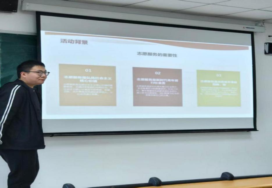 2024级建筑工程1班团支部紧扣专业特色,以理论宣讲、案例分享、互动交流、志愿项目发布为主要形式开展活动。团支书结合ppt讲解志愿服务的时代价值,聚焦土木建筑专业特点,分享土木人参与灾后重建、社区便民改造等志愿案例,让团员们清晰感知专业知识与志愿服务的结合点;互动交流环节,同学们踊跃分享身边的志愿故事,畅谈对志愿服务的理解与思考;随后,团支部正式发布校园清洁、图书整理、社区公益等志愿实践项目,明确活动要求、划分志愿小组,鼓励大家从身边小事做起,将奉献精神转化为实实在在的行动。