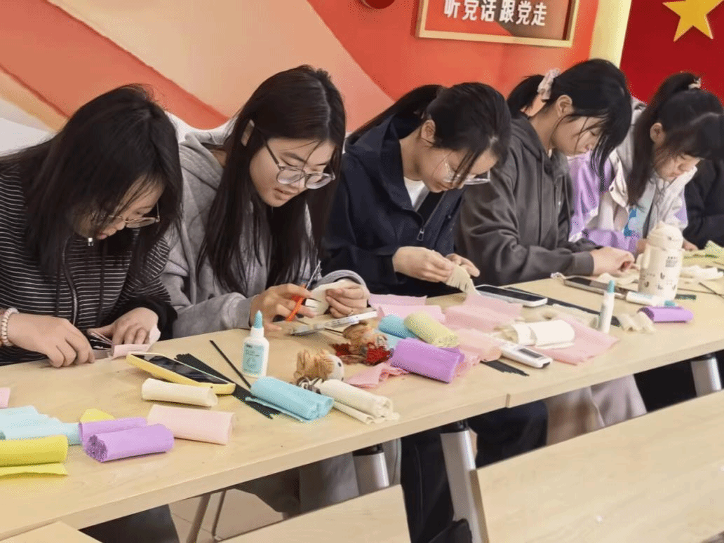 活动招募了30名学生志愿者参与。在活动现场,志愿者们怀着对先烈无比崇敬的心情,在手工艺坊同学的悉心传授下,学习利用环保纸张、铁丝等材料,亲手制作祭扫专用的手工花束。从花瓣的细致剪裁、造型,到枝叶的搭配、捆扎,每一步都凝聚着同学们的专注与深情。现场气氛肃穆而专注,大家在手工劳动中,仿佛与历史对话,重温那段峥嵘岁月,将无声的缅怀与崇高的敬意,编织进每一朵亲手绽放的“花朵”之中。