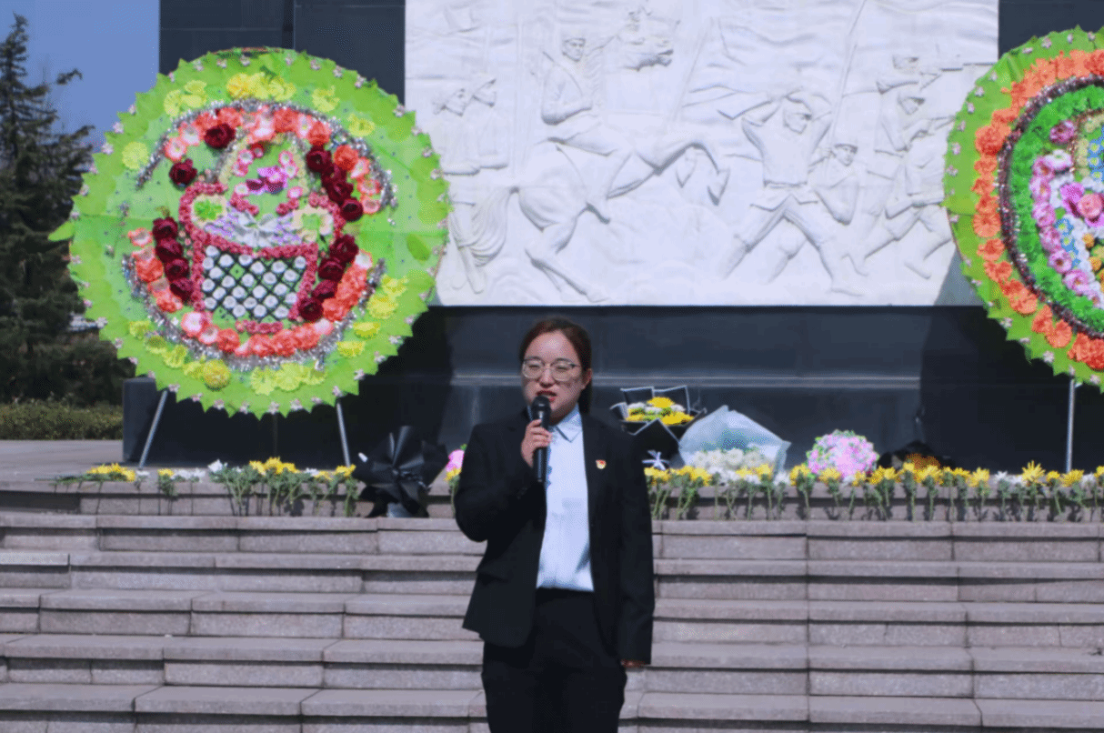 在纪念碑前,冯艳春为师生们带来了一堂“行走的微团课”。她结合榆关抗战、山海关保卫战等烽火记忆,引出无数青年以生命赴使命,用青春诠释了信仰、忠诚的坚定担当。她强调,正值中国共产党成立105周年,在这特殊年份祭奠英烈,意义尤为深远,同学们要筑牢信仰之基,做红色基因的传承者,将个人理想融入民族复兴伟业;扛起青春之责,在专业学习、社会实践和志愿服务中练就过硬本领;永葆赤子之心,以先烈为镜,明大德、守公德、严私德,用实际行动守护来之不易的幸福生活。