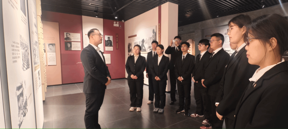 仪式结束后,全体师生怀着无比崇敬的心情,仔细拂去碑身上的尘埃,深深鞠躬饱含着赓续薪火的坚定决心。随后,师生们在石燕凯的引导下参观了革命烈士纪念馆,透过一张张泛黄的照片、一件件斑驳的文物、一段段感人的故事,重温那段烽火岁月,深刻感悟革命先辈舍生取义、浴血奋战的家国大义。