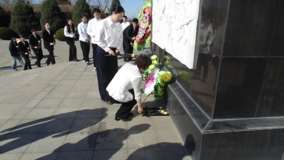 青山埋忠骨,鲜花寄深情。学生代表向革命烈士纪念碑敬献花圈,师生代表向先烈敬献鲜花。