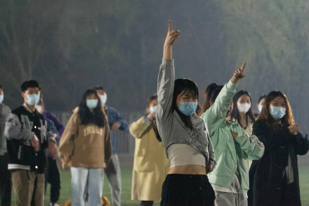 人间四月,春风拂面。参加活动的同学们在操场上组建起一方新天地,同学们用最欢快的歌曲释放学习的压力,用最热烈的舞步踢散封校的烦闷,用最开怀的笑容驱散疫情的阴霾。
