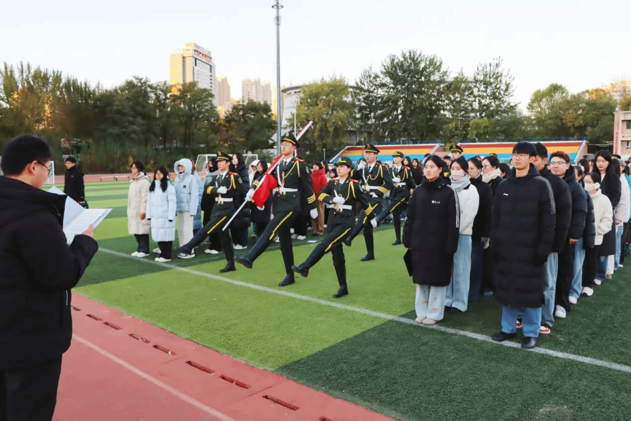 2025年10月27日清晨,马克思主义学院于东校区第一体育场举办“心系国旗,情寄华夏”主题升旗仪式。马克思主义学院团总支书记、辅导员赵瑞雪老师及2025级本科生和研究生全体成员参加了本次升旗仪式。