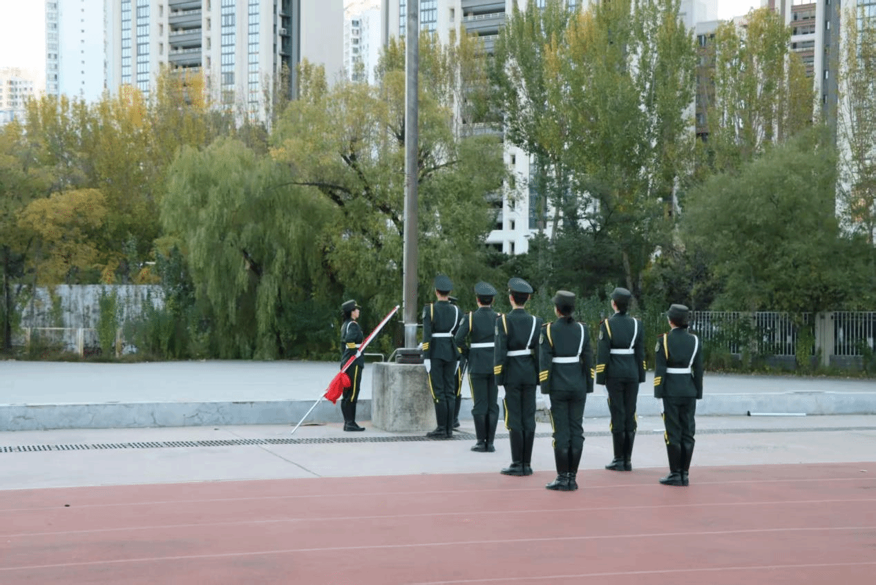 仪式伊始,国旗护卫队成员迈着整齐有力的步伐护旗入场,挺拔的身姿与饱满的精神尽显庄重。伴随着激昂嘹亮的《义勇军进行曲》,五星红旗冉冉升起,全体师生肃立注目,齐声高唱国歌,以最肃穆的姿态传递对祖国的崇敬与热爱,现场浓厚的爱国氛围感染着每一个人。