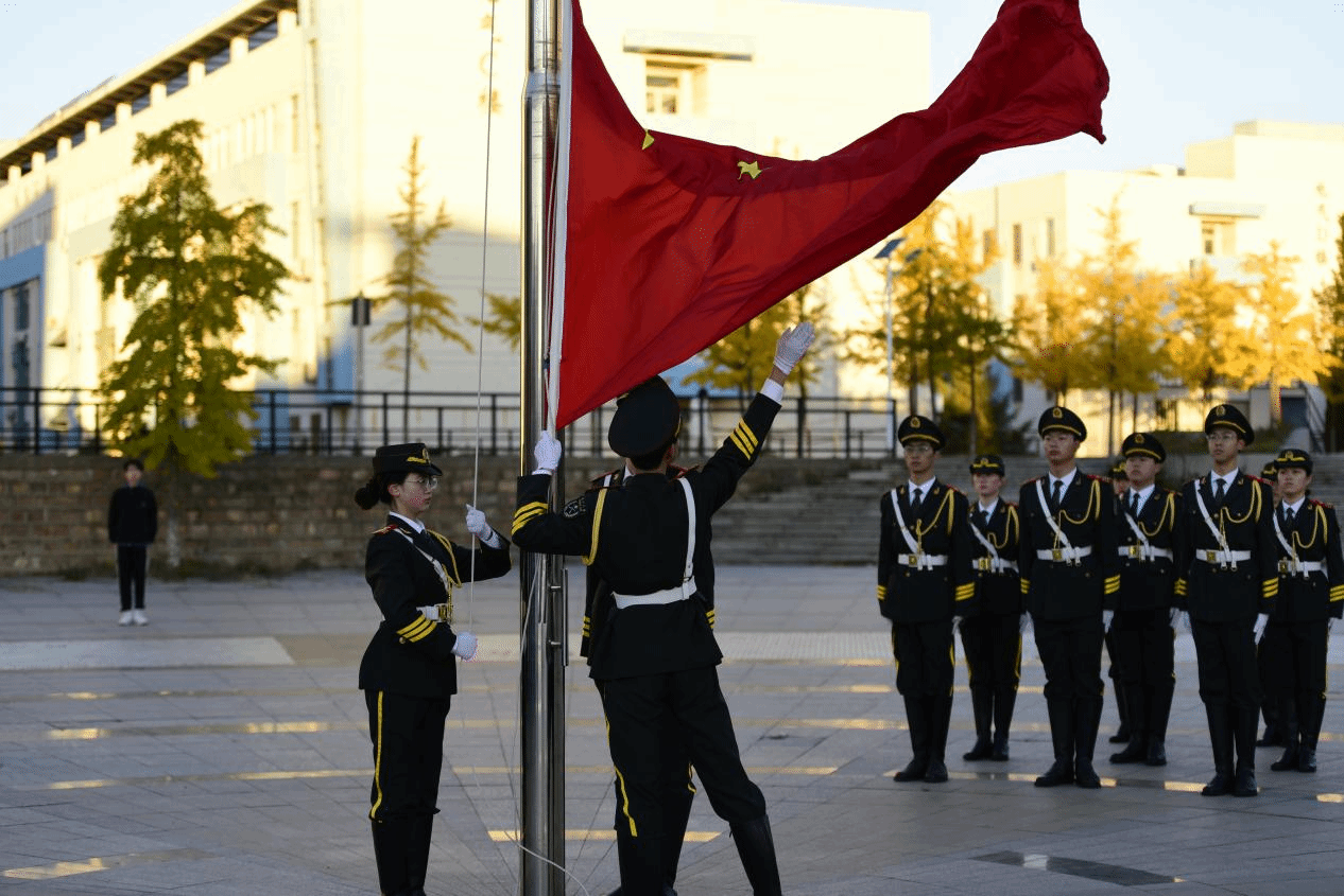 活动当日,现场氛围庄严肃穆,在全体师生的注目下,国旗护卫队同学昂首阔步,动作整齐划一,伴随着激昂的国歌声,五星红旗冉冉升起。