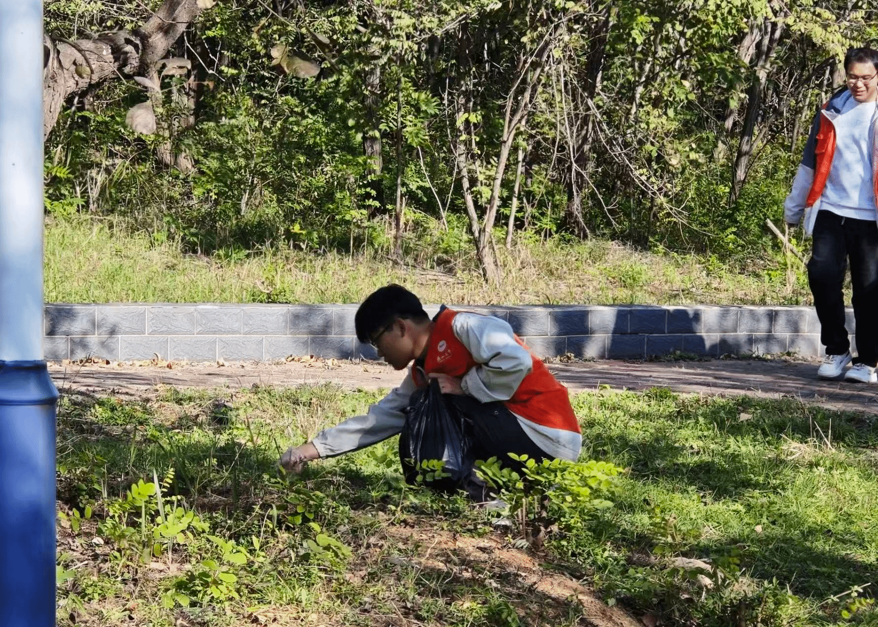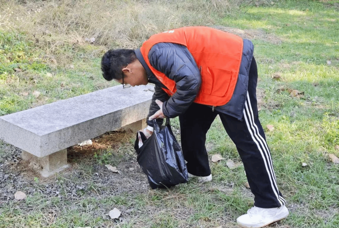 到达塔山后,志愿者们迅速行动起来,他们手持垃圾袋和清洁工具,不放过任何一个隐藏在草丛中的垃圾,无论是废弃的塑料瓶、包装袋,还是烟头、纸屑,都被他们一一捡起,装进垃圾袋中。在捡拾垃圾的同时,志愿者们还细心地收集着自然掉落的落叶。整个清扫和收集过程中,志愿者们严格遵守环保要求,不破坏山间的一草一木,用实际行动诠释着对自然环境的敬畏与呵护。