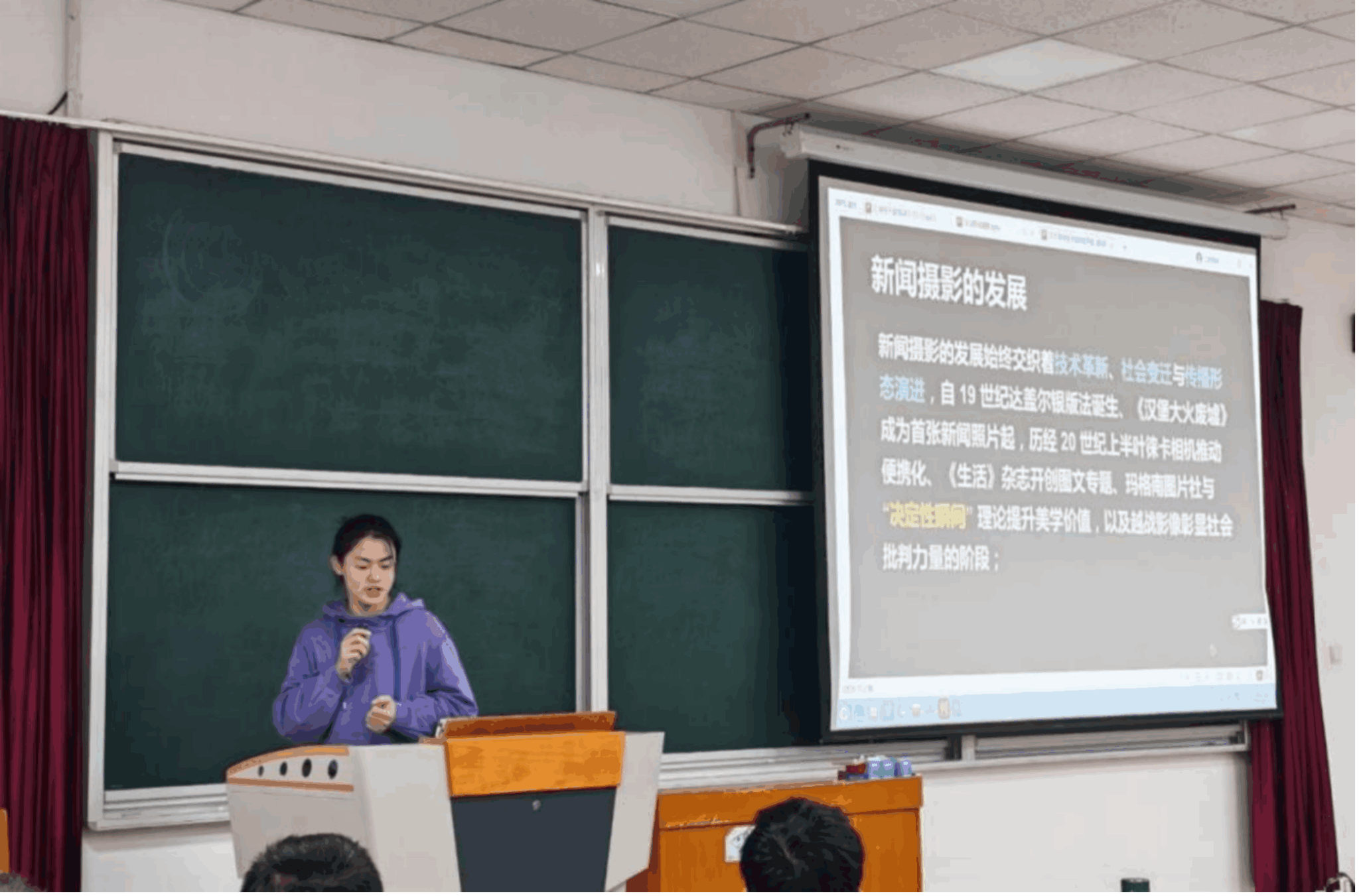 随后,李科军同学结合自身经验,围绕新闻摄影的关键要素与拍摄技巧展开分享,内容详实、贴近实际,使学生干部对如何用镜头捕捉重要瞬间、展现学院风采有了更深理解。