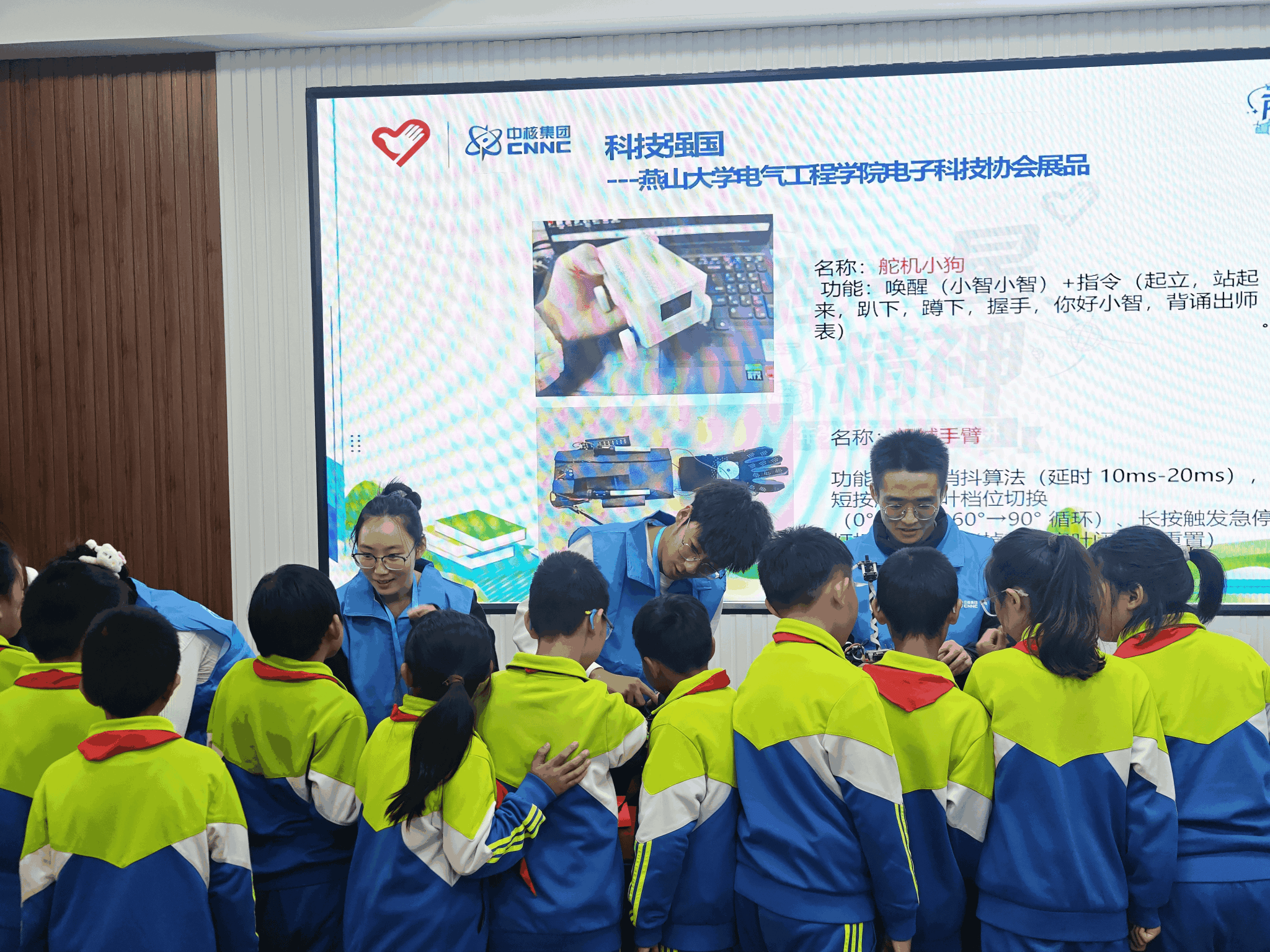 为推进大中小学思想政治教育一体化建设、凝聚跨学段育人合力,10月31日,燕山大学电气工程学院携精心遴选的优秀科创成果与创意作品,联合秦皇岛市阅读促进会将“红魂润童心科智燃梦想”共建活动带进秦皇岛市海港区耀华小学,以大学创新活力注入基础教育沃土。学院副处级辅导员张颖、团委书记刘凯,耀华小学书记校长党蕾、教学副校长张景然率双方师生代表参与活动。
